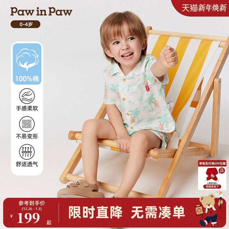 【商场同款】PawinPaw卡通小熊童装25春夏新款男宝宝纯棉印花衬衫