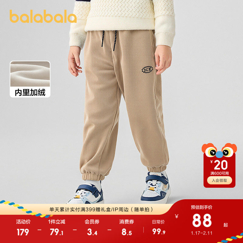 巴拉巴拉童装儿童加绒长裤男童冬装灯芯绒厚裤子加绒保暖加厚休闲