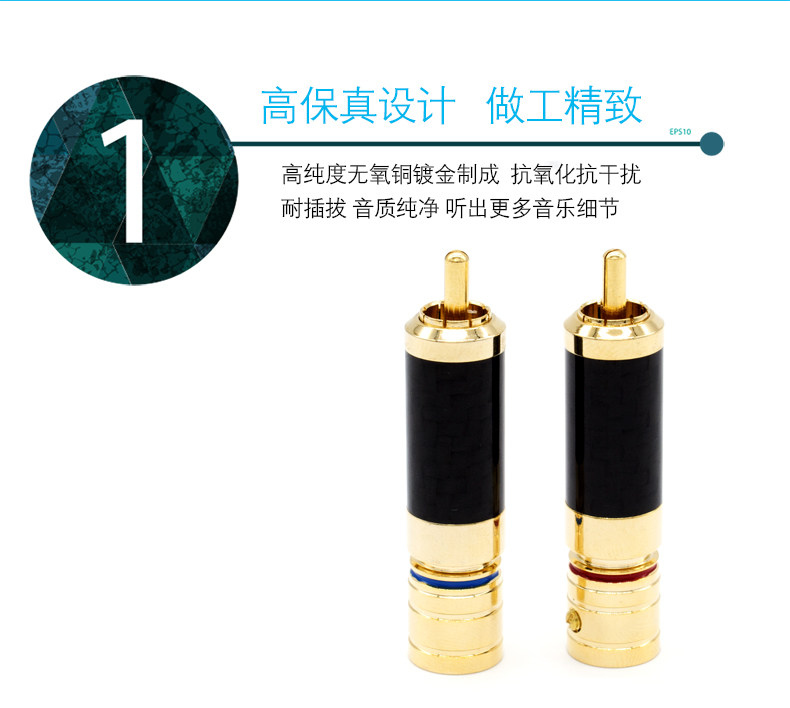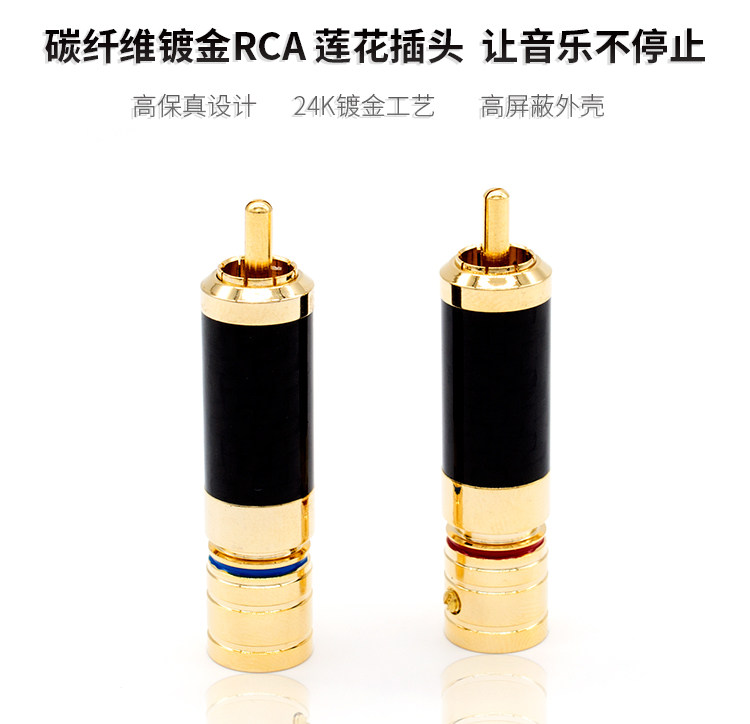 纯铜碳纤维镀金 RCA头莲花插头抗氧化纯铜无磁音频线焊接头