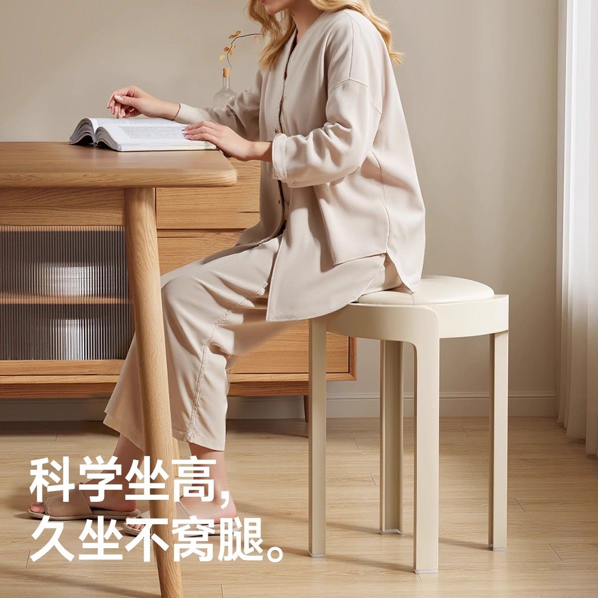 塑料凳子家用软包可叠放加厚结实耐用轻奢高级感圆凳子备用高椅子