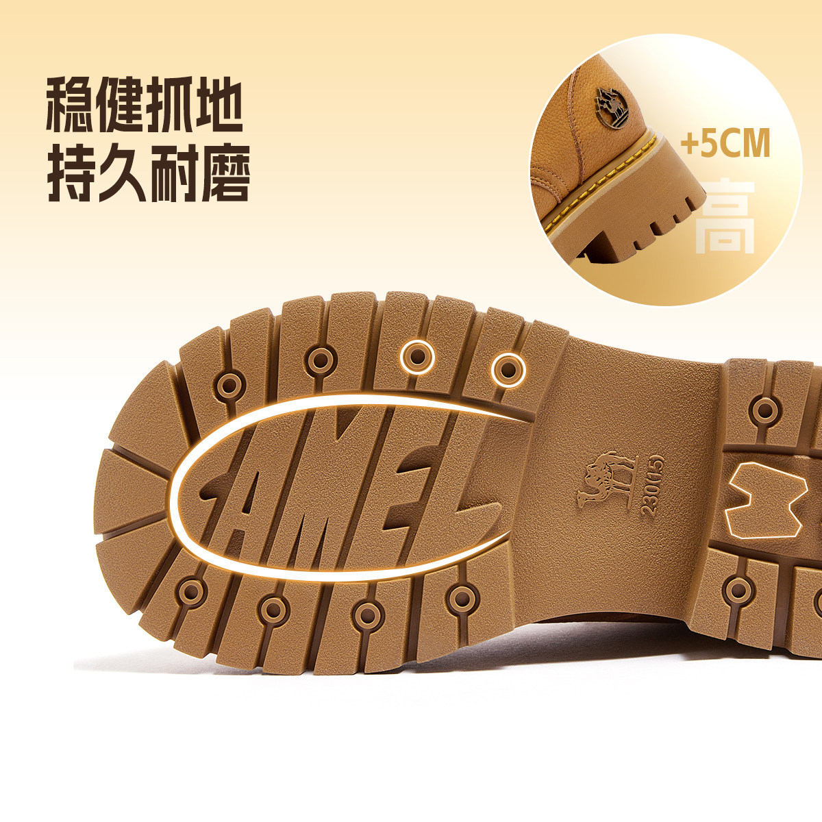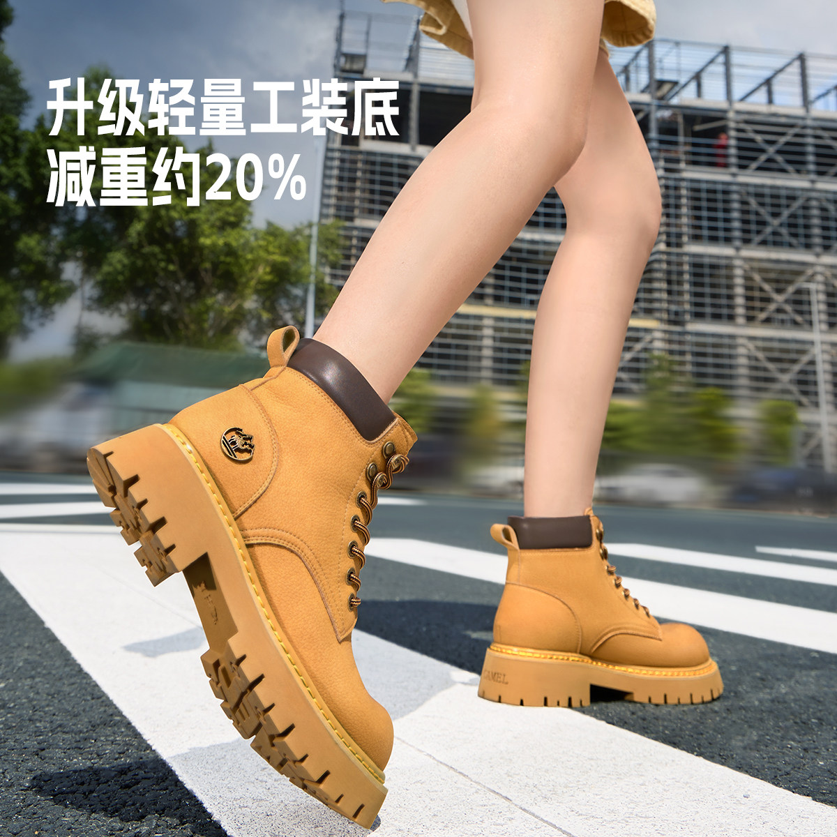 骆驼2025秋季工装风厚底马丁靴女增高短靴系带户外登山靴轻量女鞋