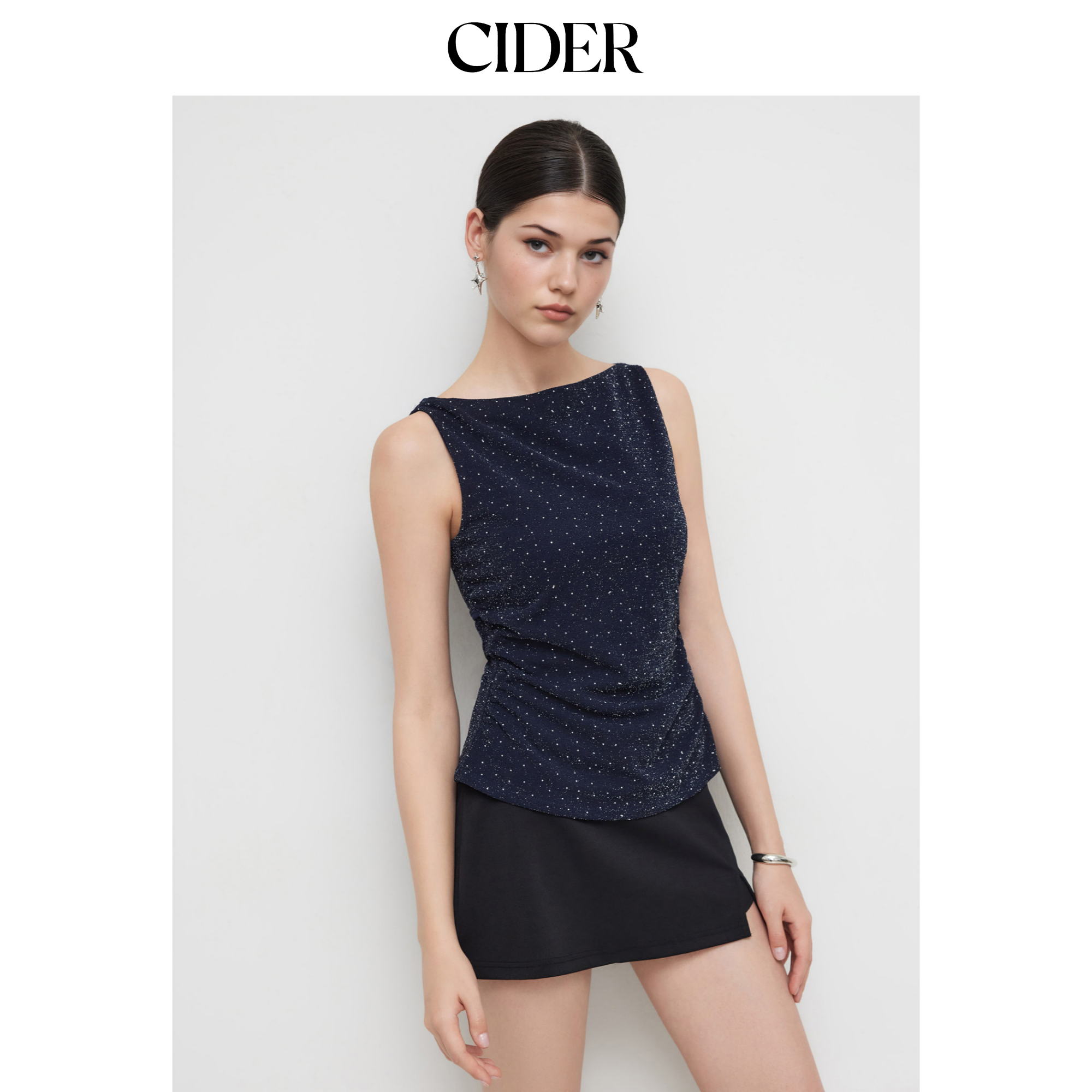 CIDER水钻系带船领短款背心113824943