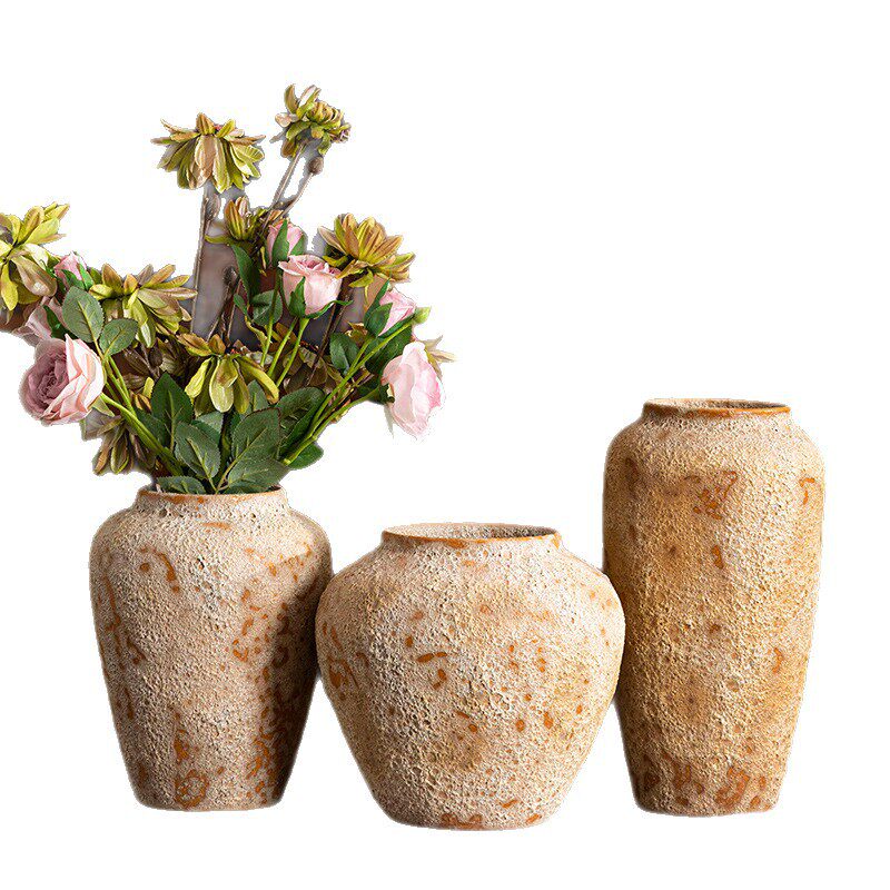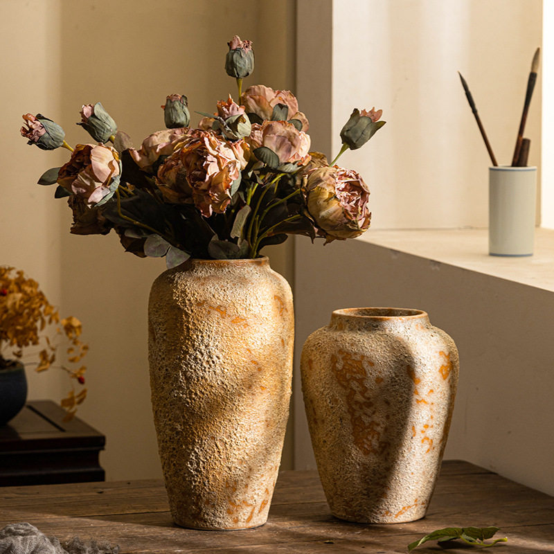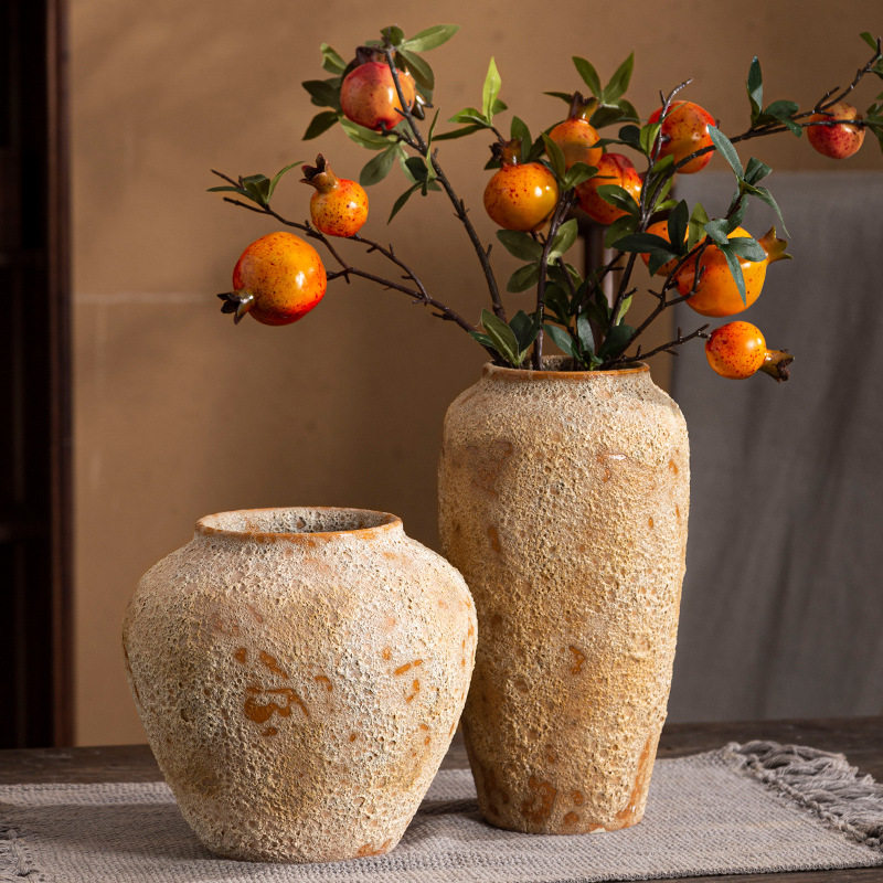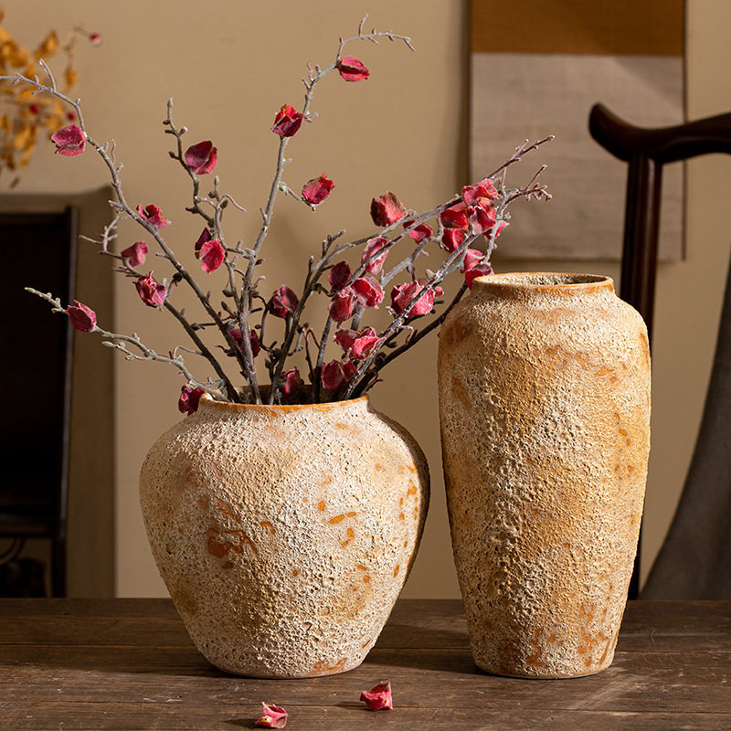 手工陶瓷复古花瓶摆件客厅插花中式粗陶玄关电视柜侘寂风陶罐