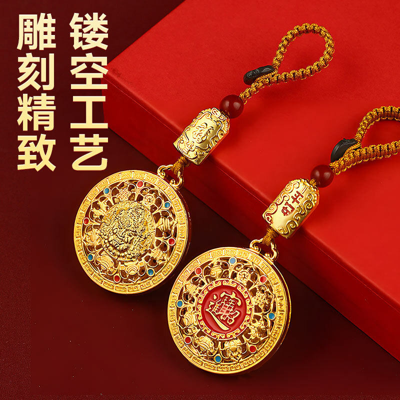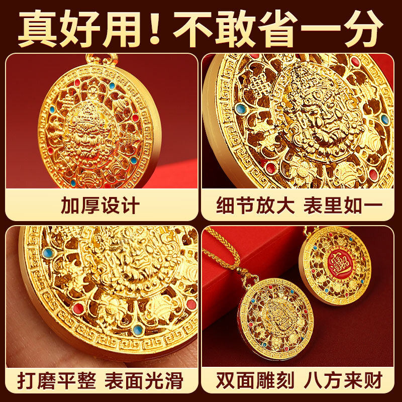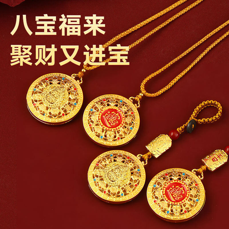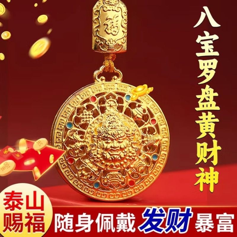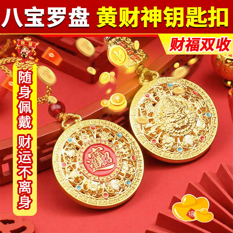 八宝罗盘钥匙扣黄财神吊坠编织绳仿金项链本命年挂件聚财合金金属