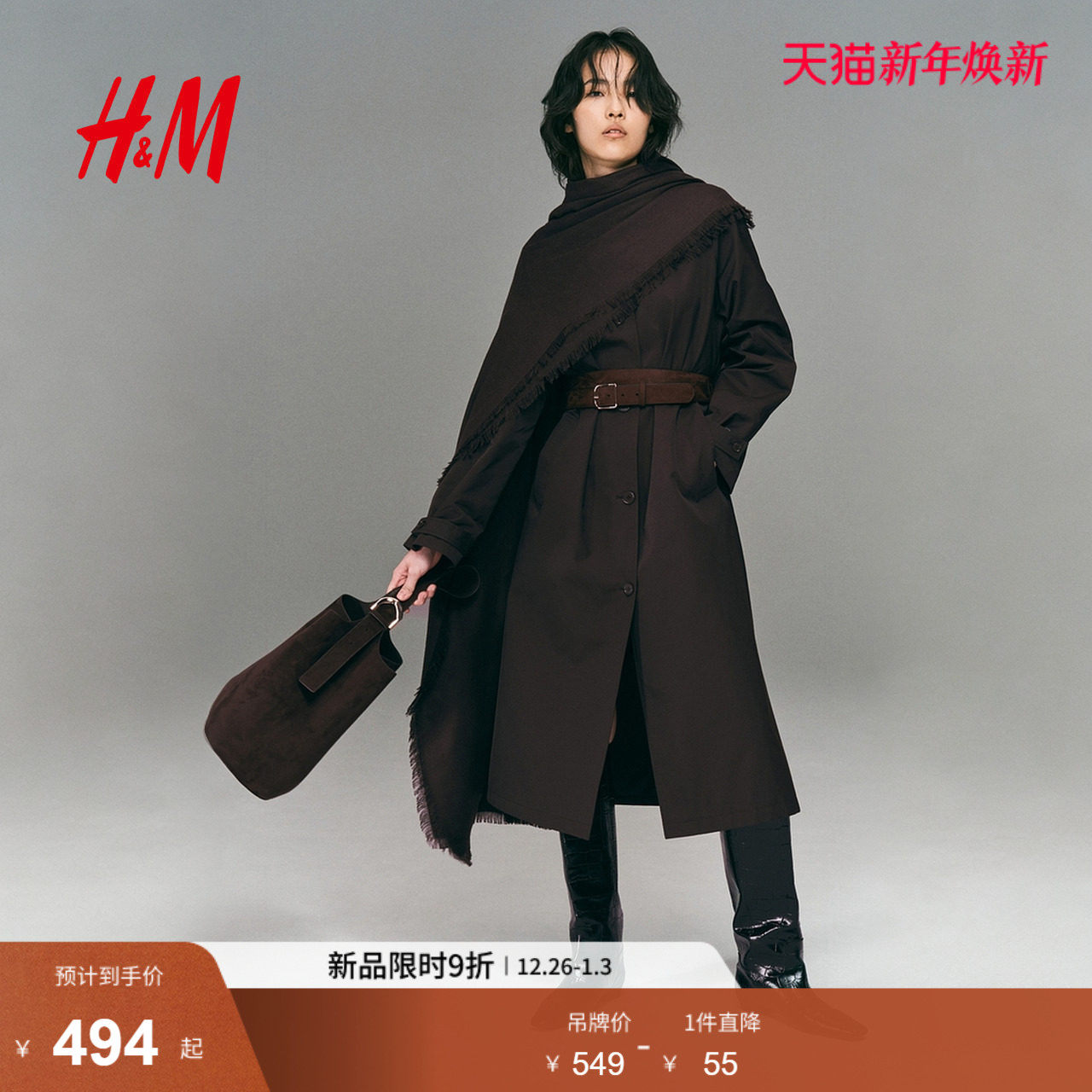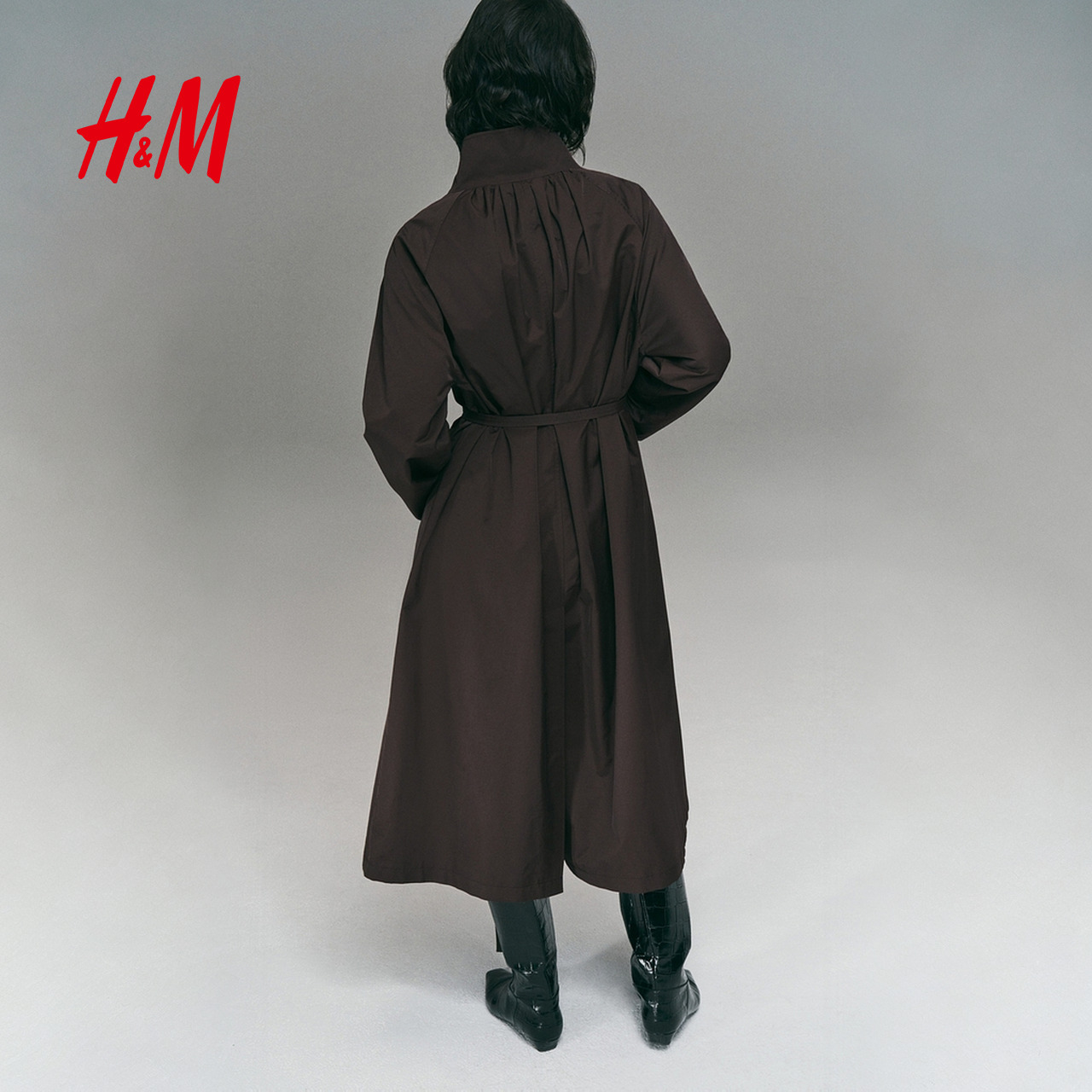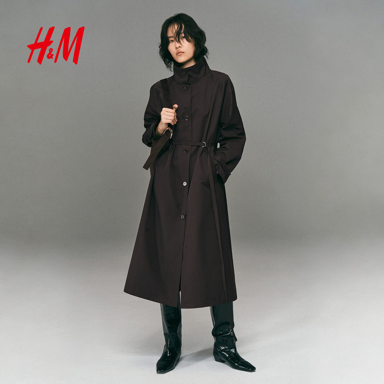 HM女装风衣2025秋季新款法式气质休闲外套梭织配腰带大衣1311900