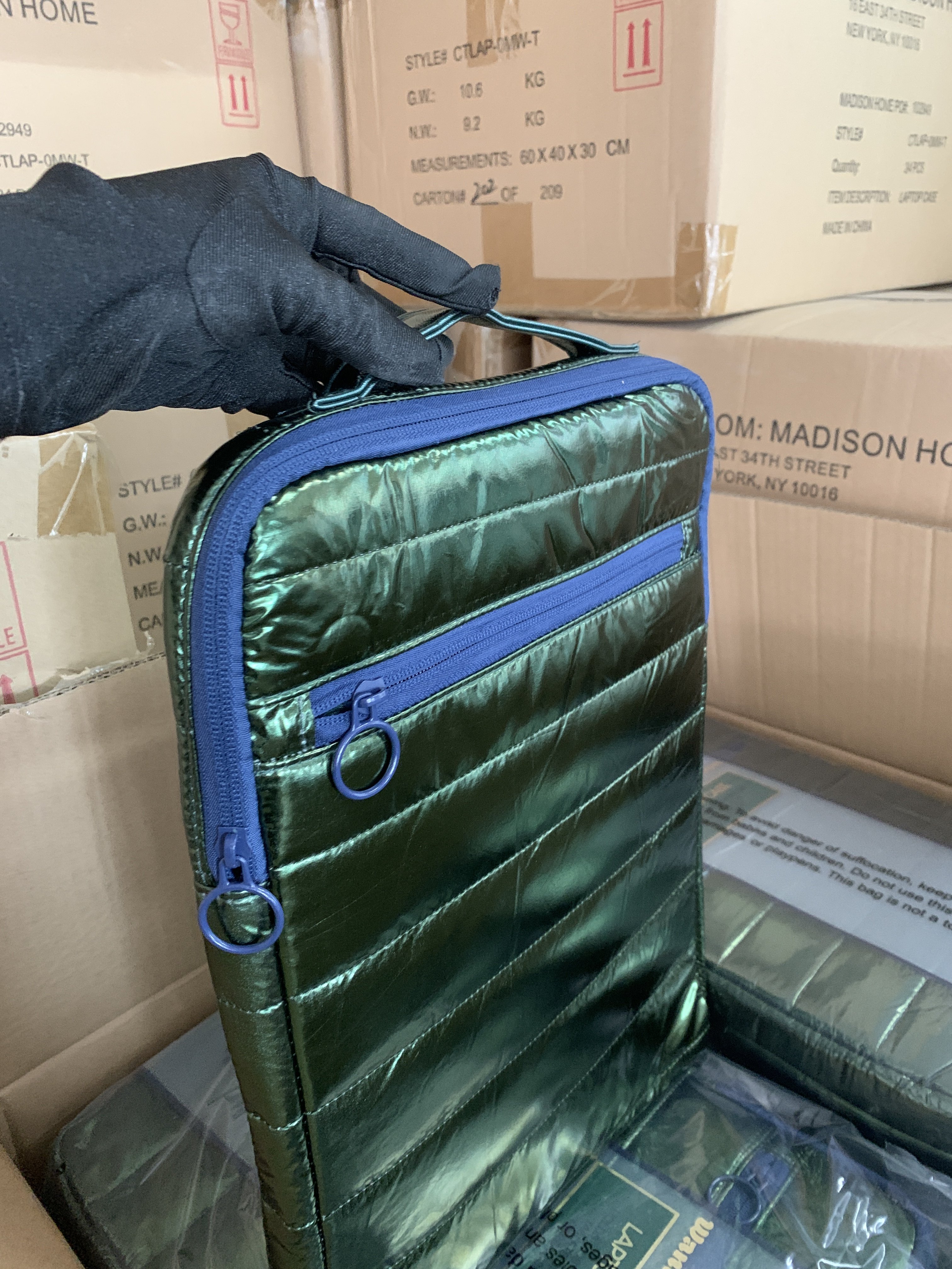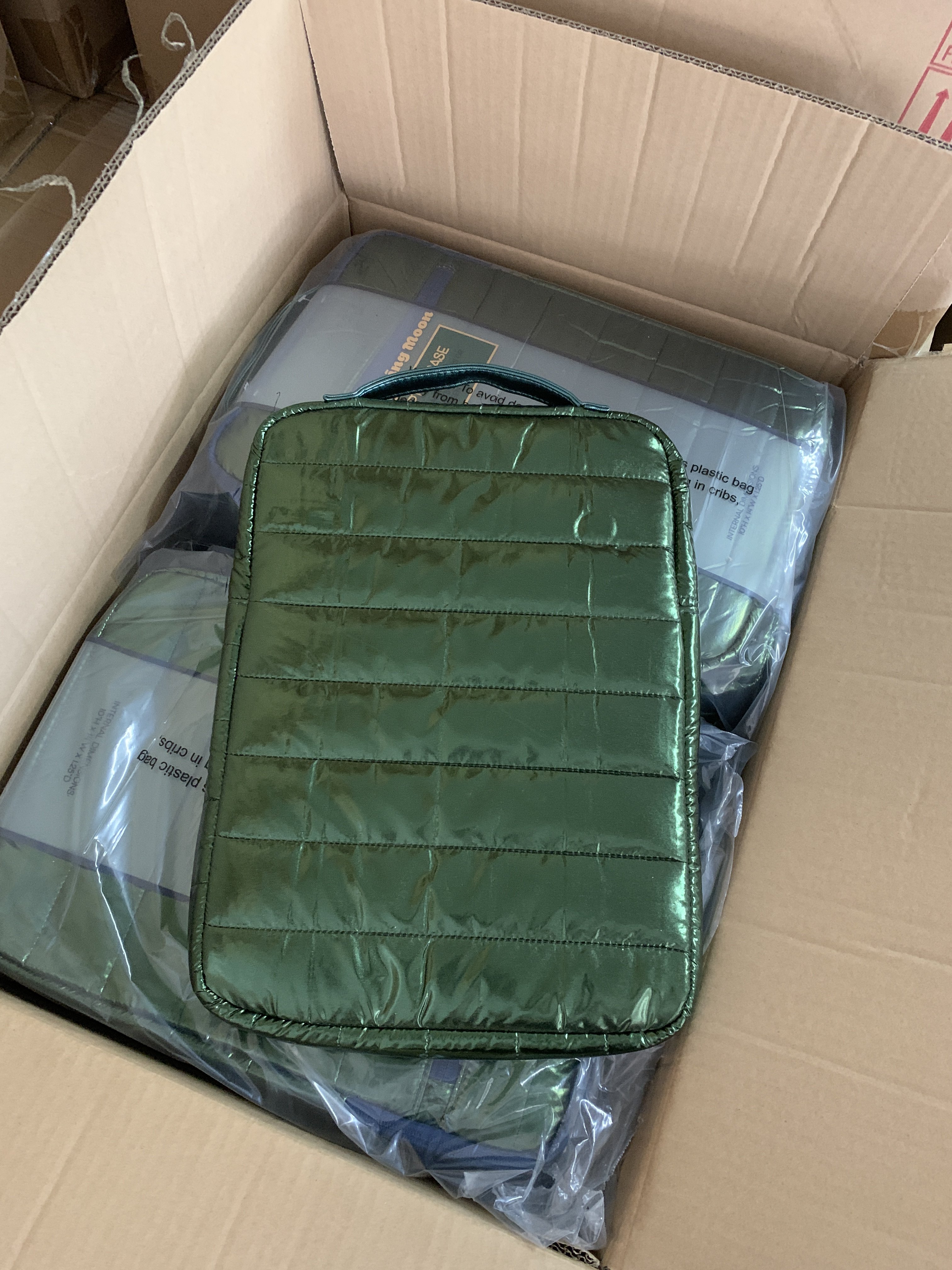 出口外单轻羽绒布料加厚夹棉防震手提15寸笔记本包14电脑包