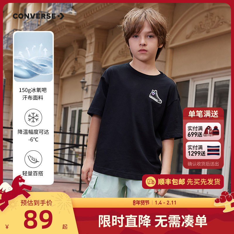 匡威童装2025夏季新款男童短袖T恤中大童女童休闲冰丝透气半袖