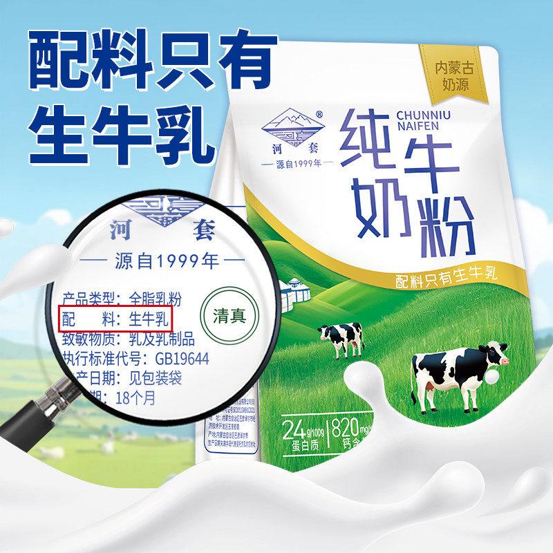 河套内蒙古纯牛奶粉独立小包装全脂中老年儿童高钙学生年货生牛乳