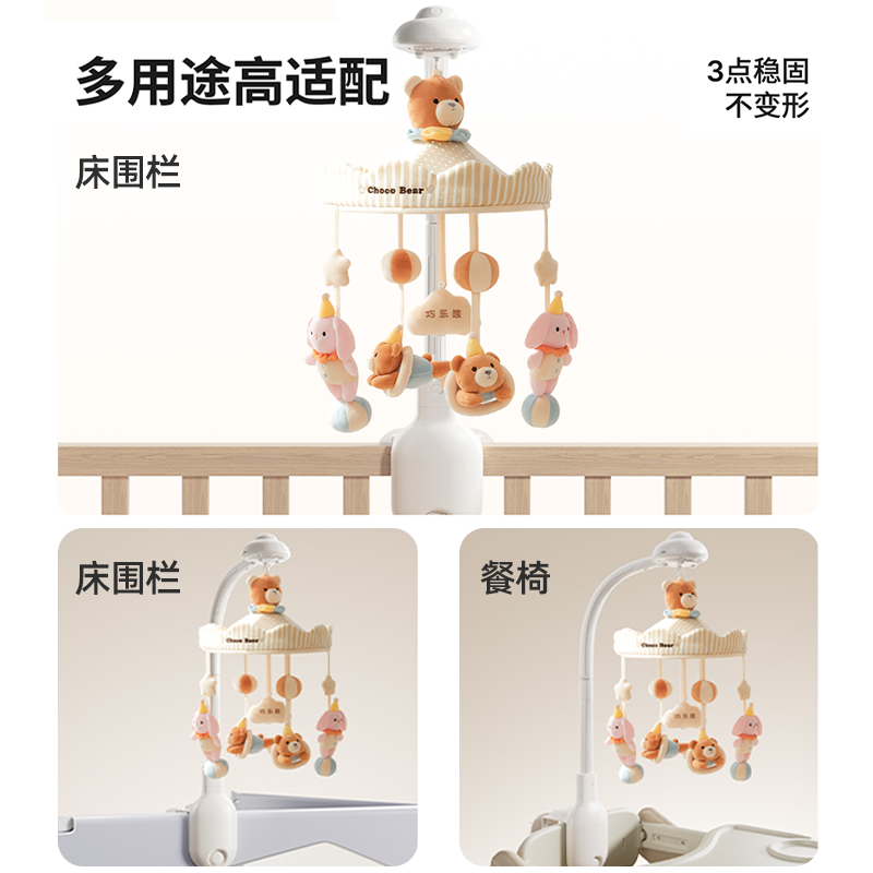 新生婴儿床铃0-1岁3-6个月宝宝玩具旋转床头摇铃车挂件悬挂式支架