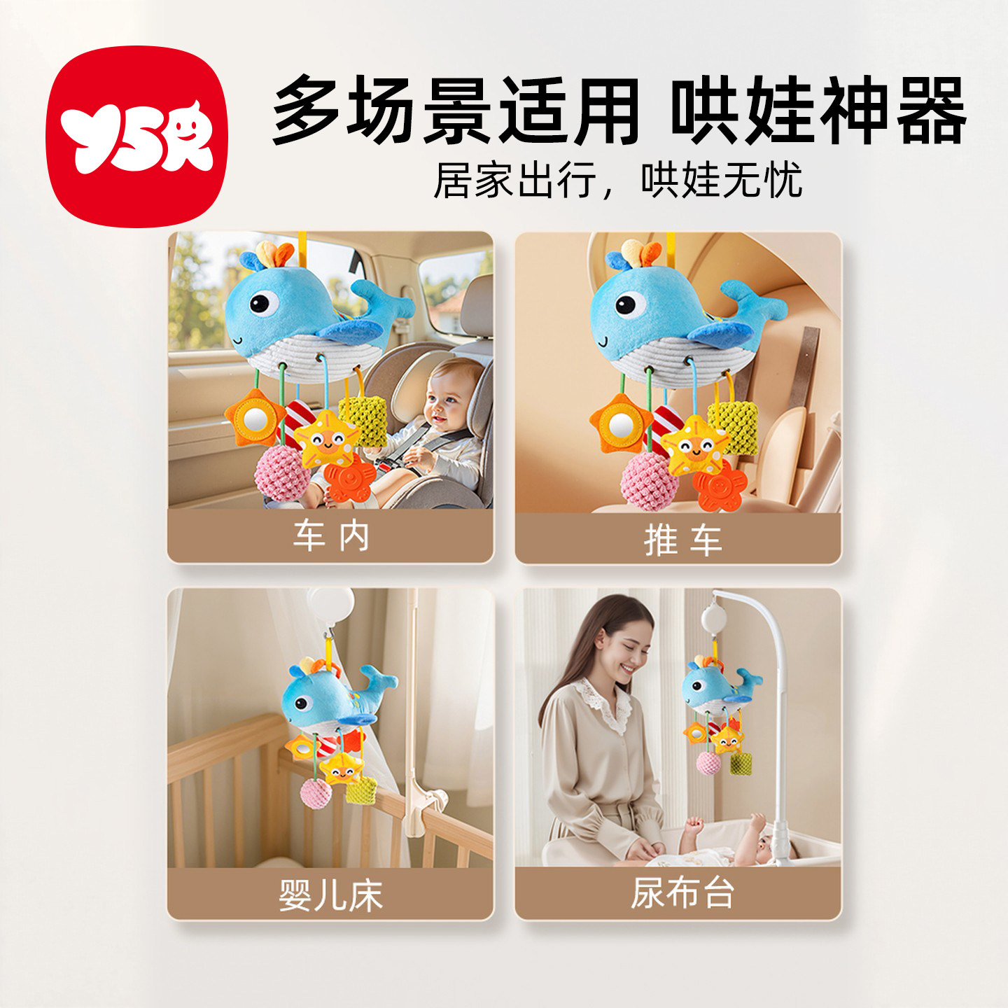 新生婴儿床铃0-1岁3-6个月宝宝玩具旋转床头摇铃车挂件支架安抚