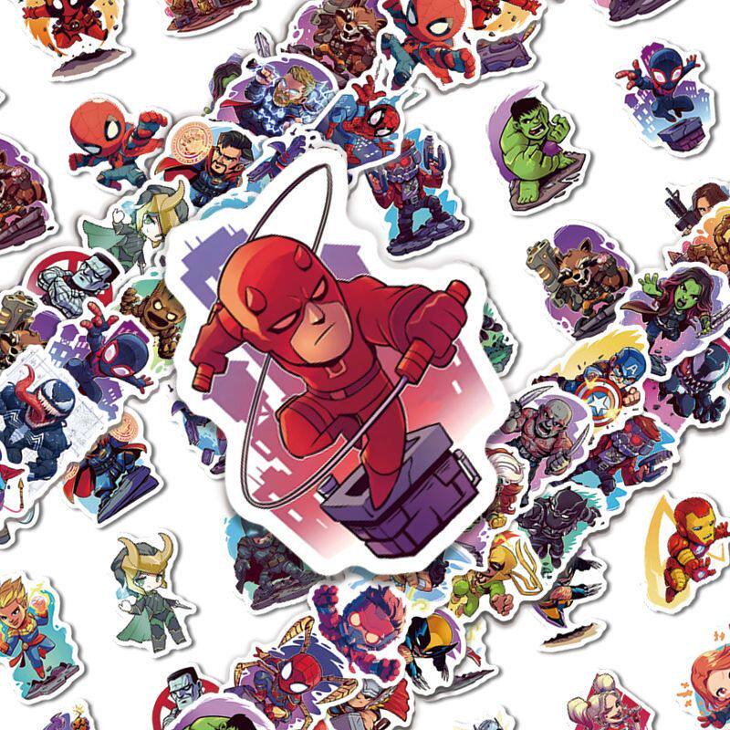 120张Q版漫威贴纸复仇者联盟蜘蛛侠钢铁侠手机手账笔记本防水贴画