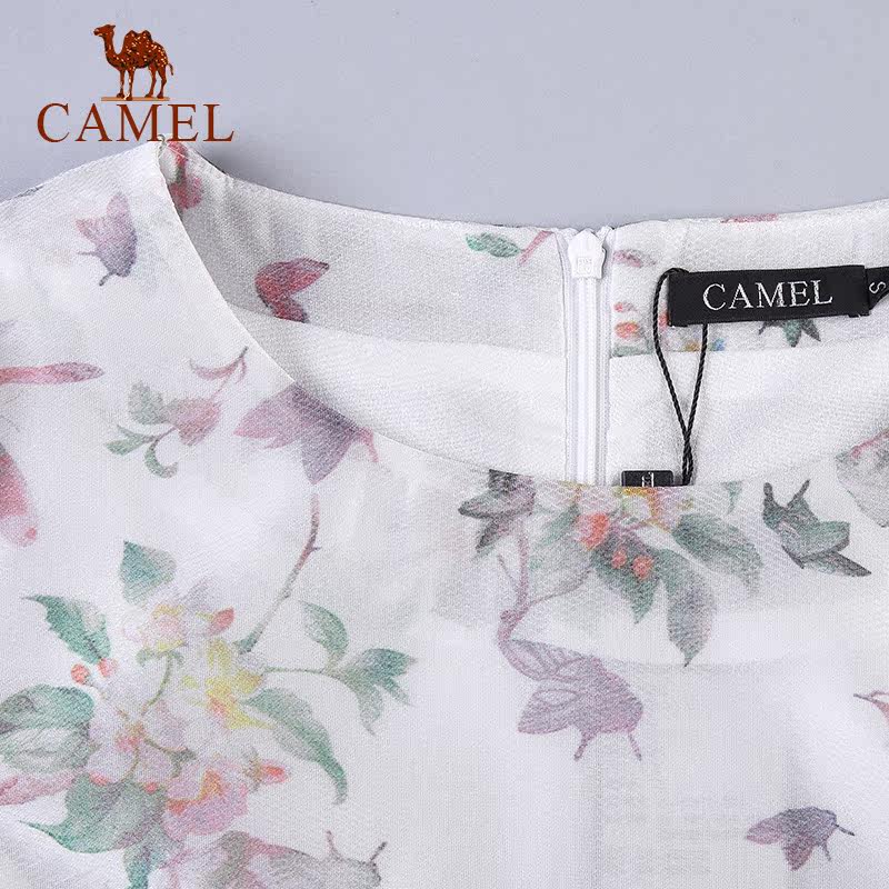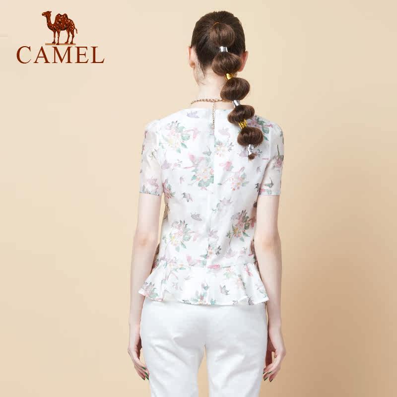 【非卖品】Camel骆驼夏荷叶边短袖甜美欧根纱雪纺衫印花上衣