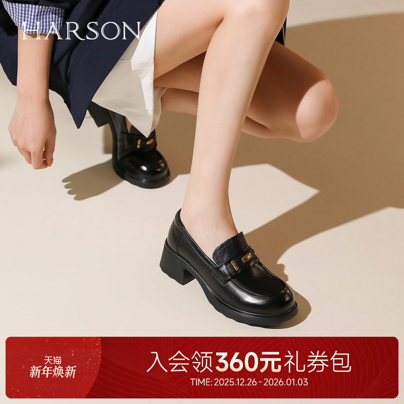 哈森金属乐福鞋粗高跟厚底上班通勤一脚蹬女鞋2026新款HS262801