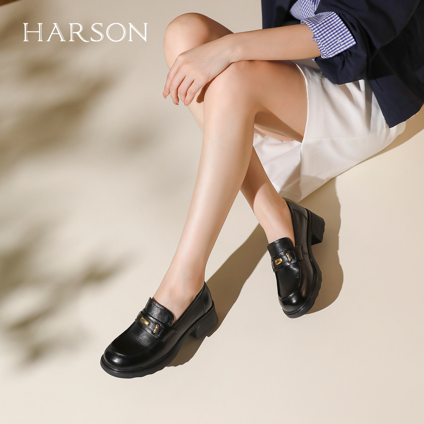 升级版~张元英同款miu风金币英伦学院粗跟高跟真皮乐福鞋女小皮鞋