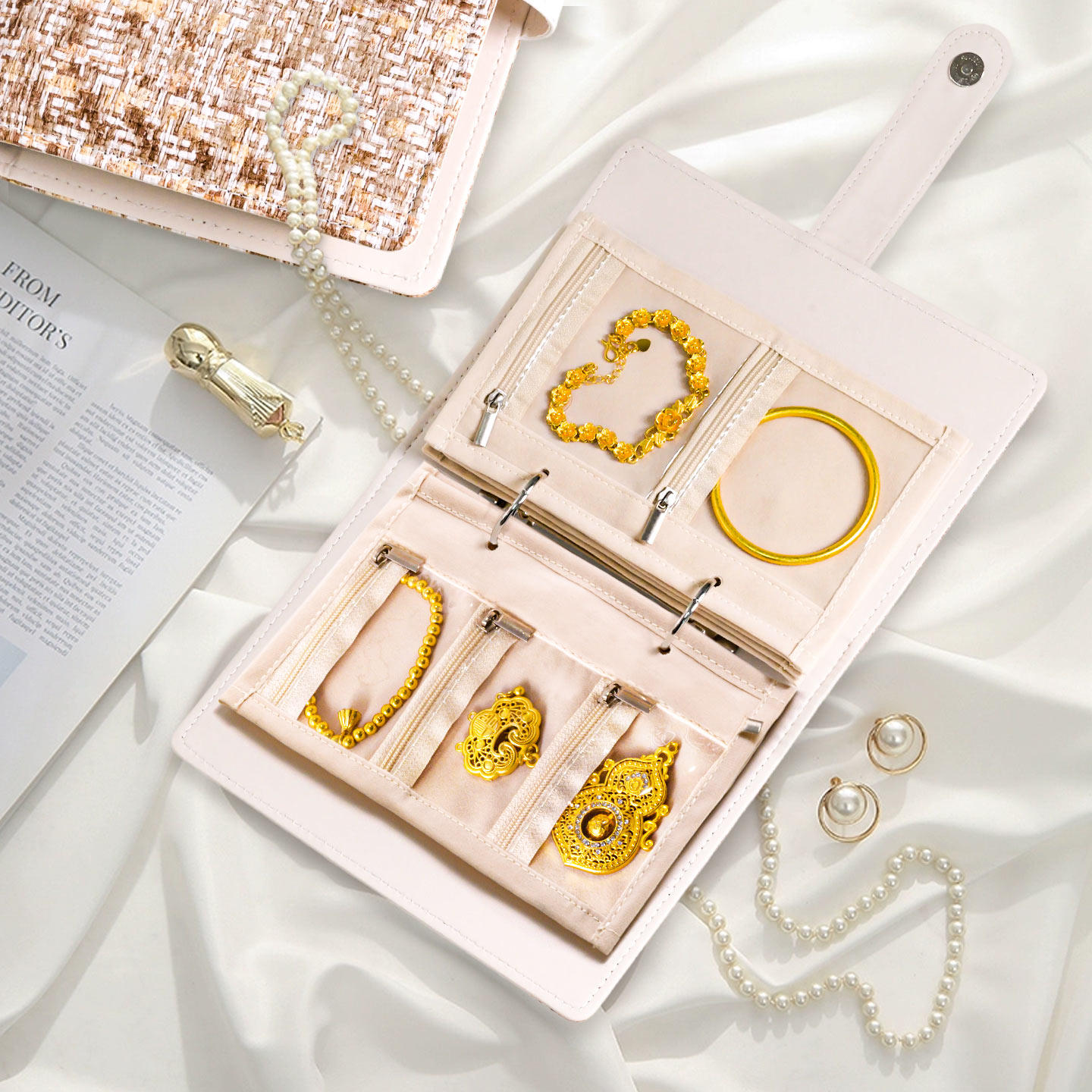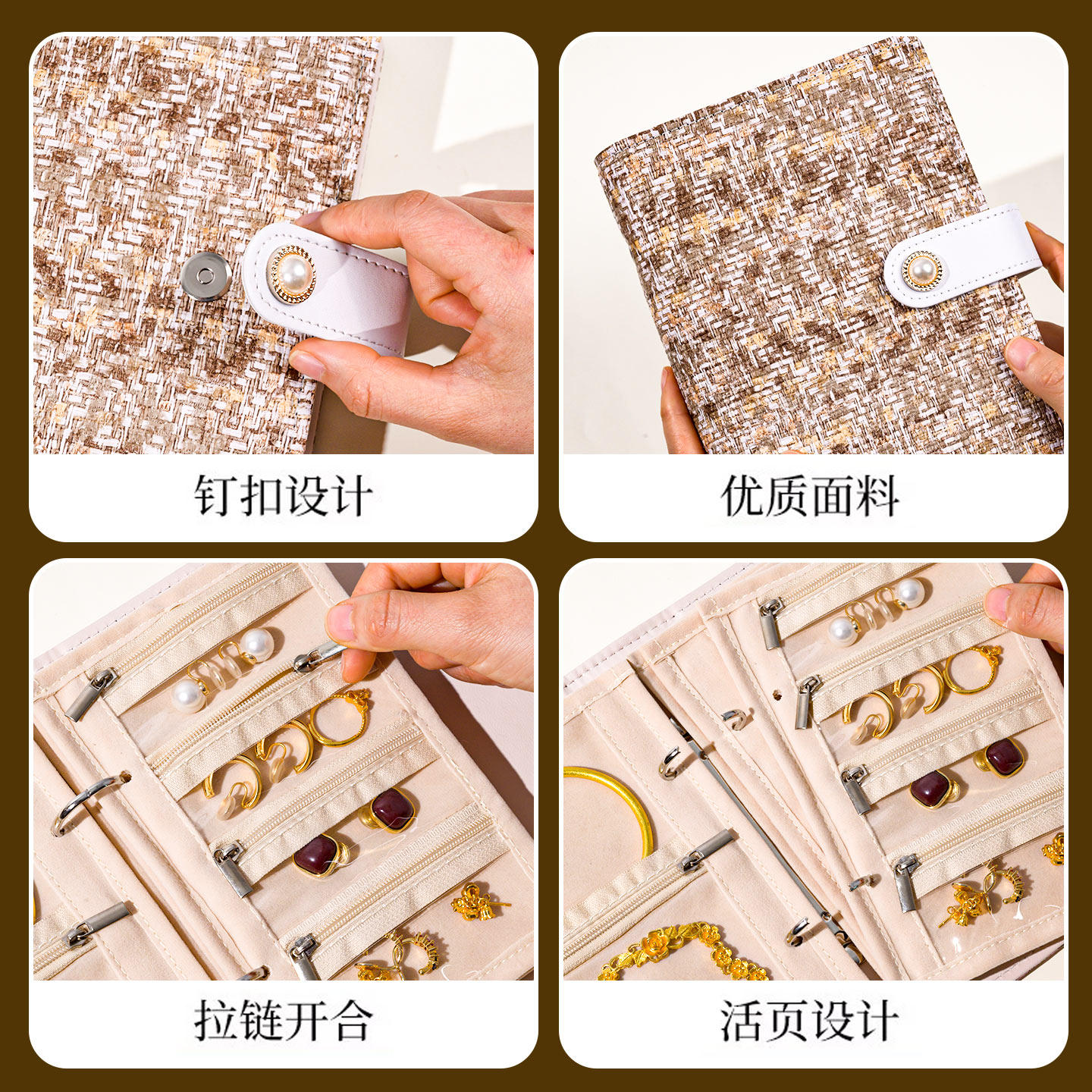 小香风首饰收纳包饰品专用黄金手饰收纳册书2025新款旅行便携收纳本耳环项链手链手镯戒指包密封袋珠宝便携式