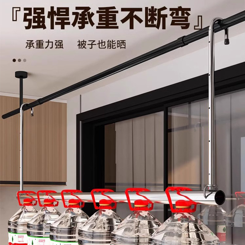 不锈钢可伸缩晾衣杆室内晒衣服可折叠免打孔悬挂式晾衣神器