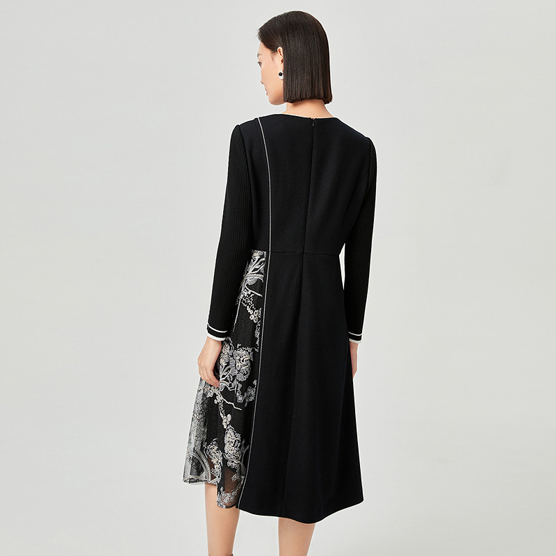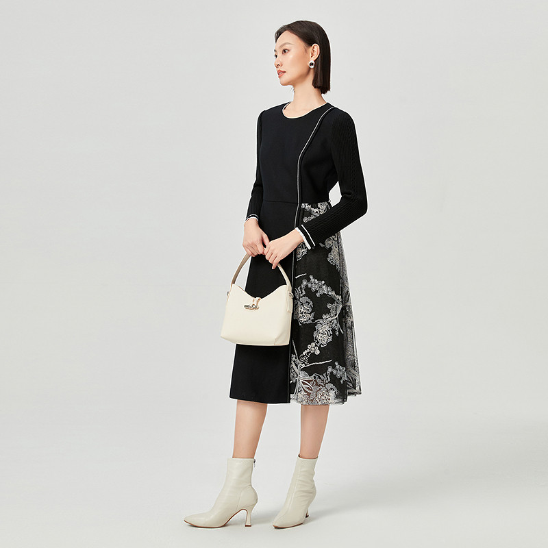 【都市户外】NAERS娜尔思绵羊毛优雅印花连衣裙25冬新款(配腰带)