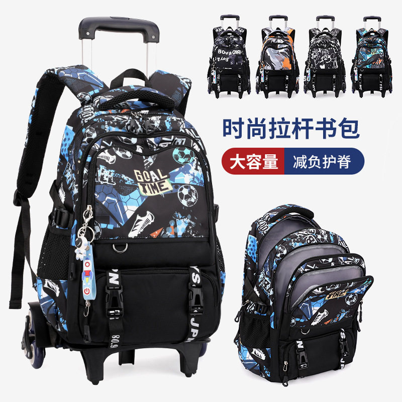 自然鱼拉杆书包小学生儿童3-6带轮子背包初中生双肩包大容量减负