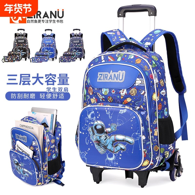 小学生书包男儿童三到六年级拉杆书大容量包超轻背包爬楼梯可拆卸