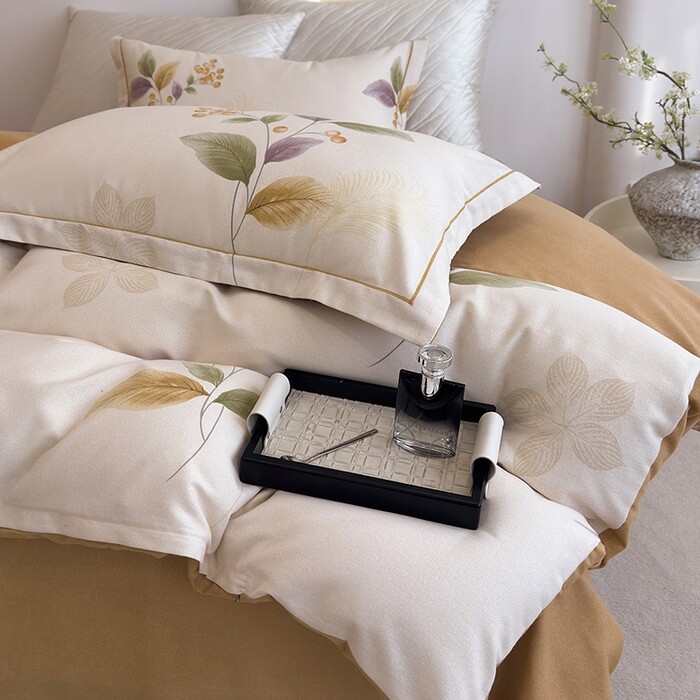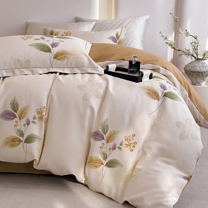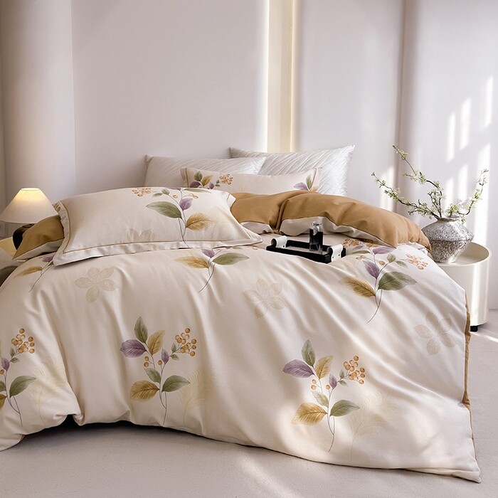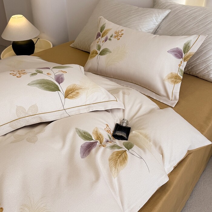 全棉活性印花四件套纯棉新中式植物花卉床品套件极简风卧室简约