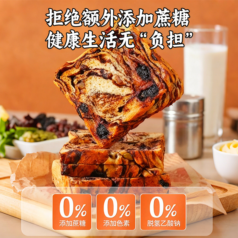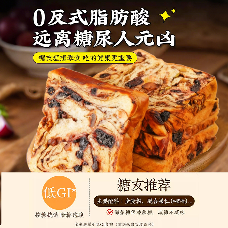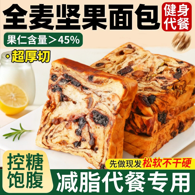 全麦坚果厚切吐司代餐饱腹减专用无糖精0脂食品孕妇面包早餐整箱