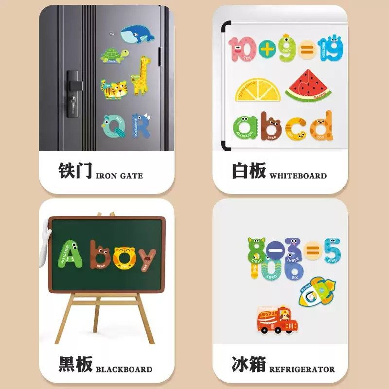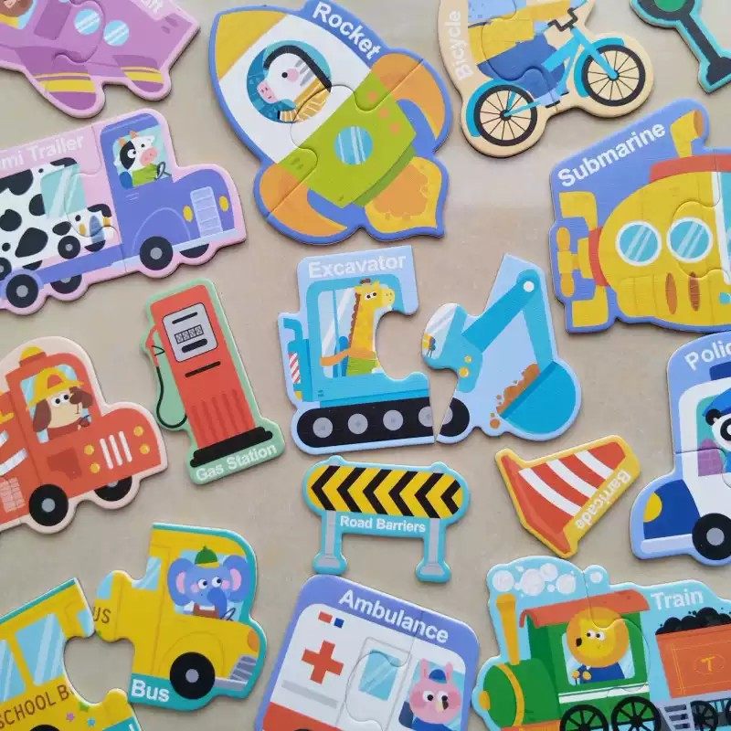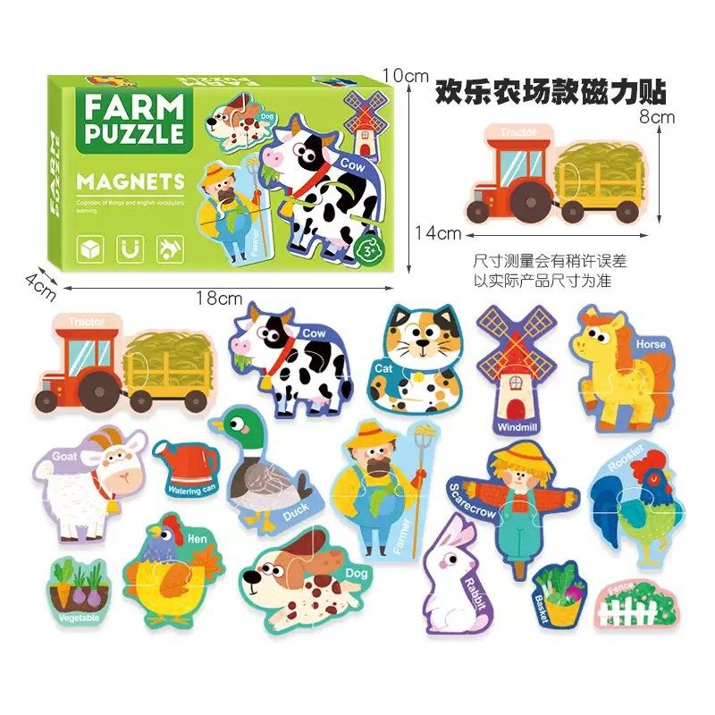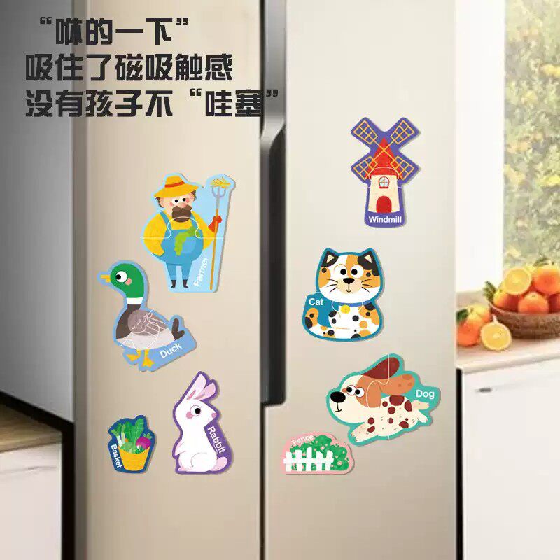 儿童早教2片配对大块汽车拼图玩具动物字母认知磁力冰箱贴1-3宝宝