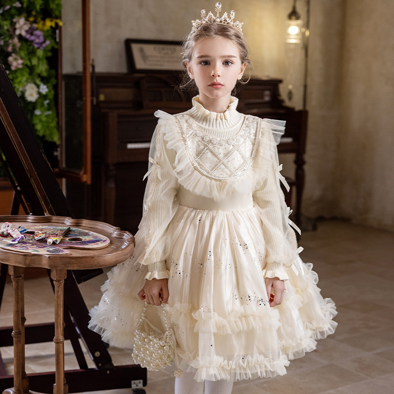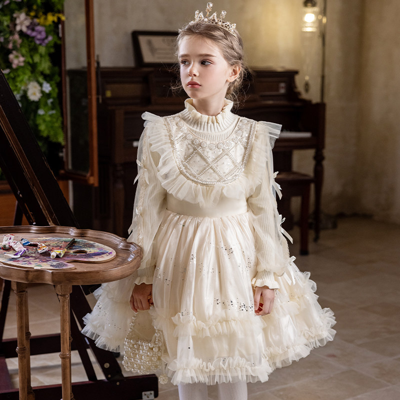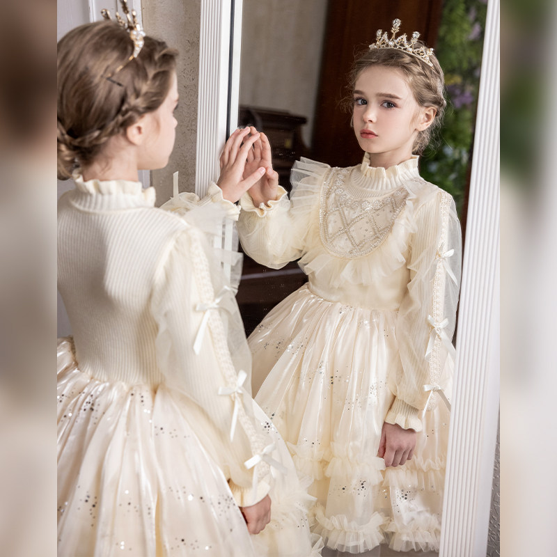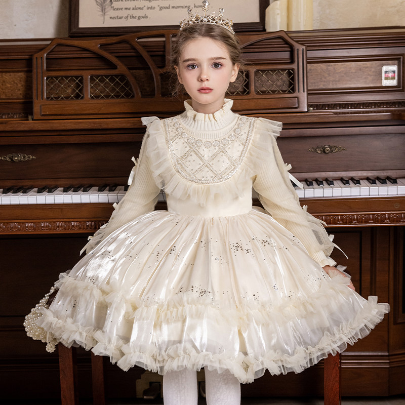 女童礼服钢琴演奏公主裙儿童冬裙女孩花童婚礼主持人生日艾莎裙子