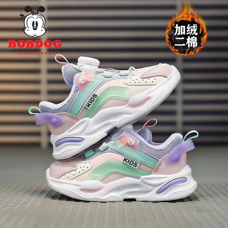 巴布豆女童鞋子2025冬季新款女孩运动鞋加绒加厚二棉鞋男童跑步鞋