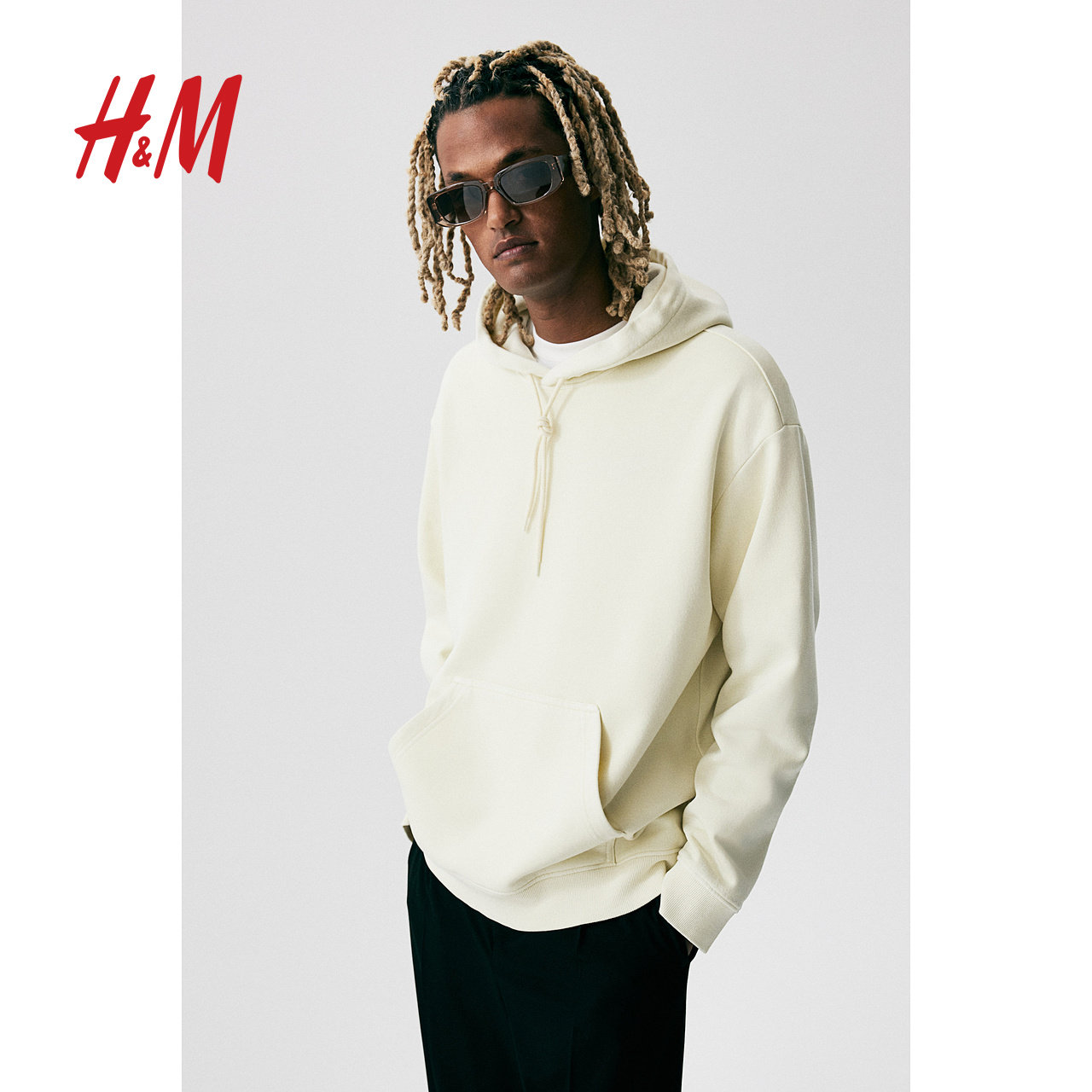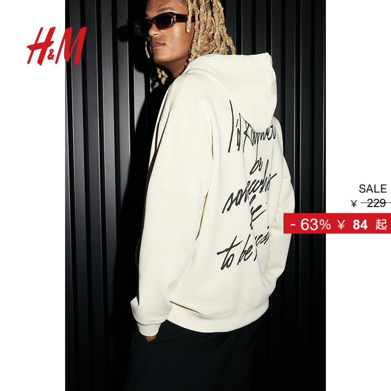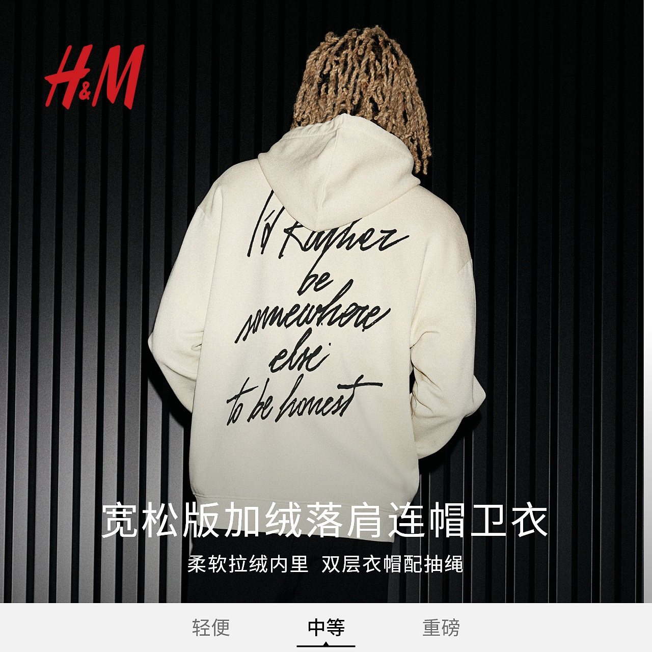 HM男装女装卫衣冬季加绒宽松美式印花情侣装长袖连帽衫1122659