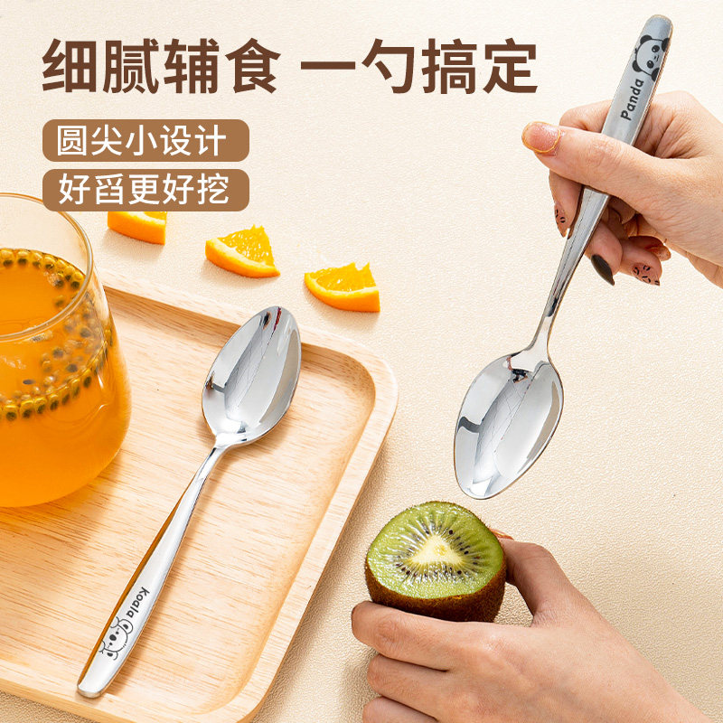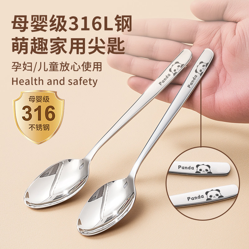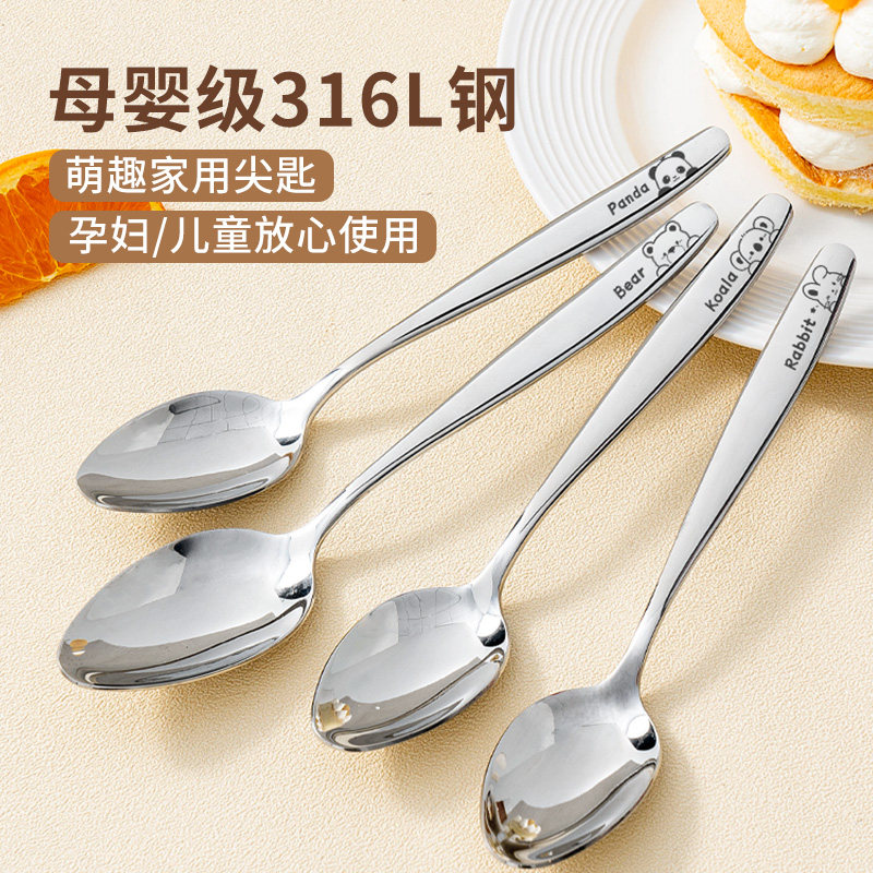 316不锈钢勺子家用食品级个人专用餐勺长柄汤匙可爱儿童吃饭勺子