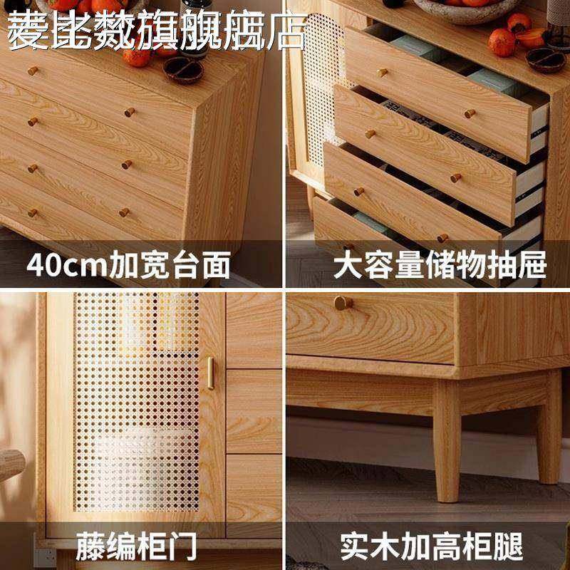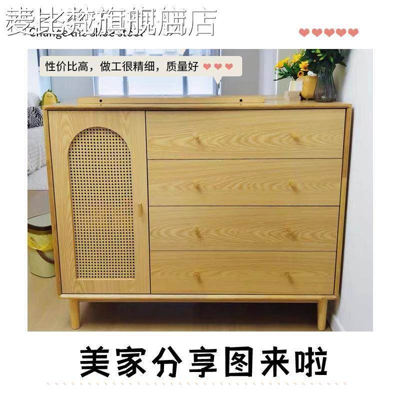 麦比梵实木框斗柜客厅收纳柜北欧风藤编置物柜原木色卧室储物柜简约五斗床笠拉车