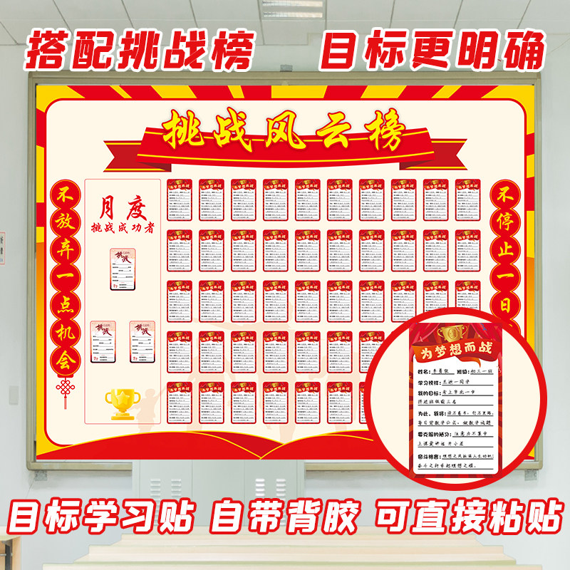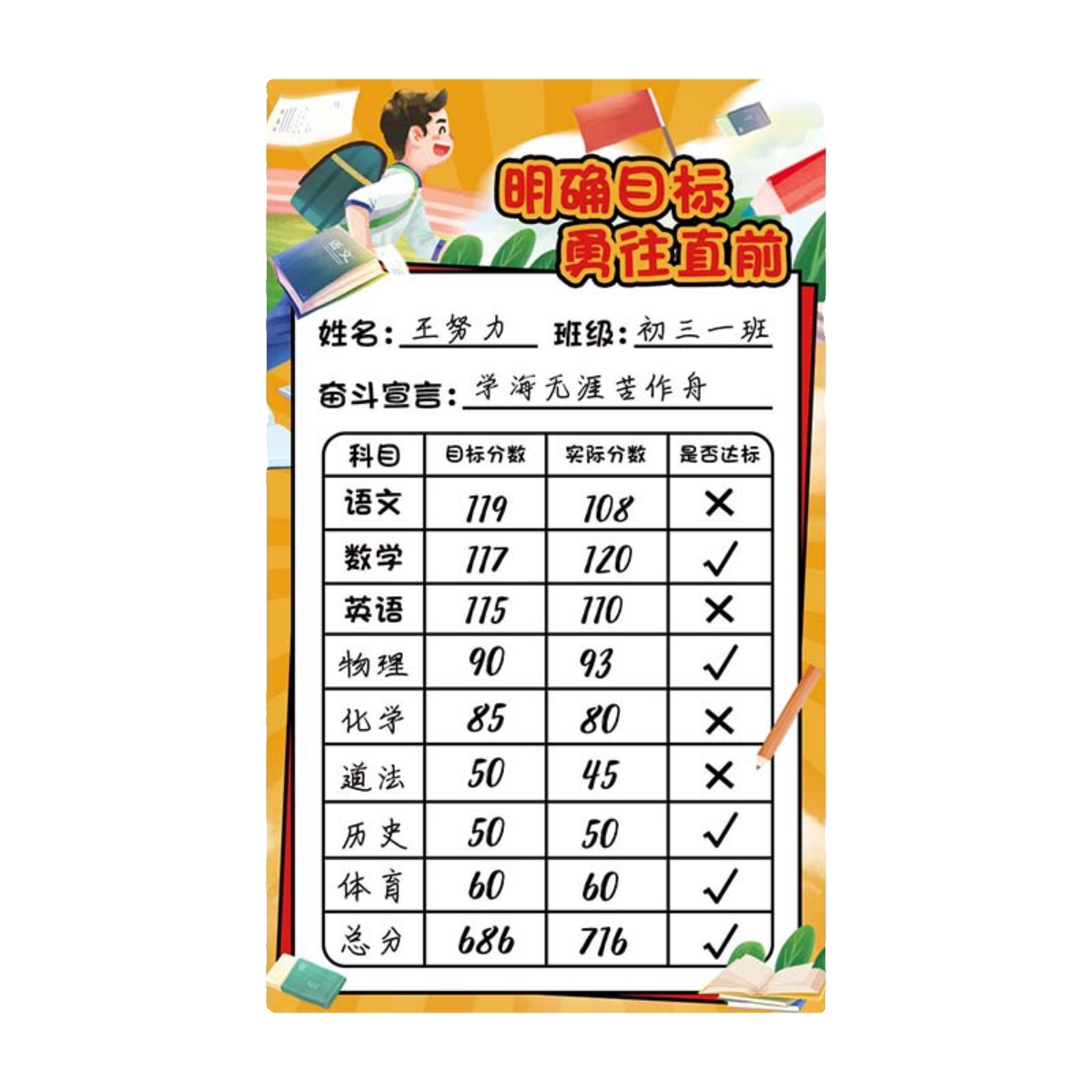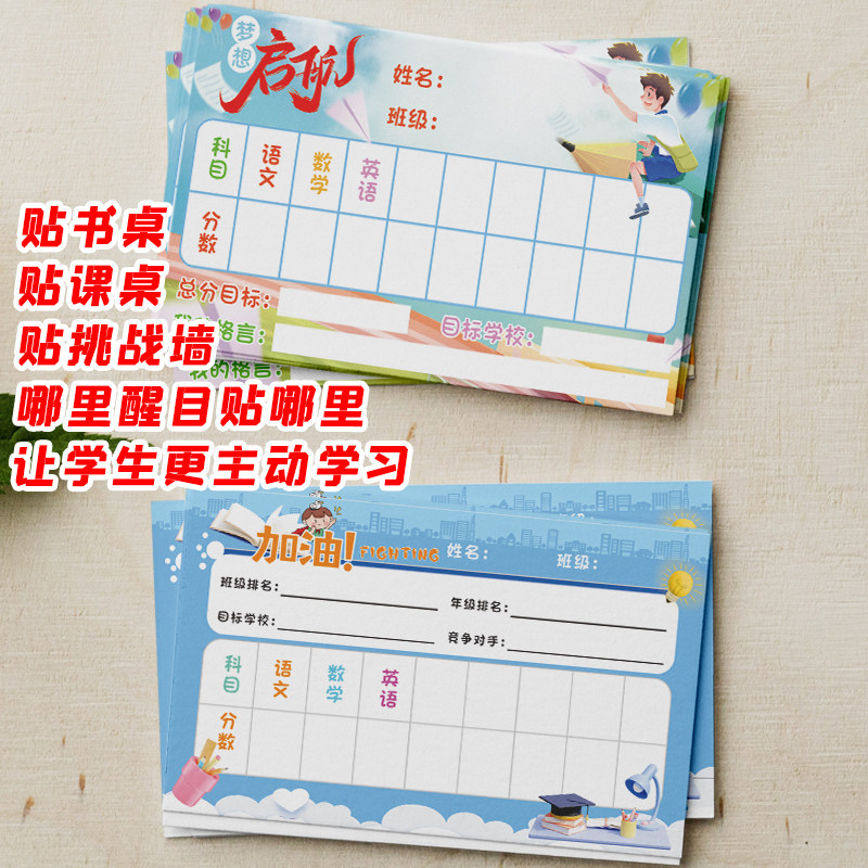 学生学习目标卡片中考试励志学习桌贴高考挑战书贴纸目标激励墙贴