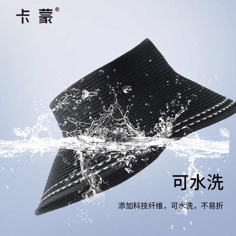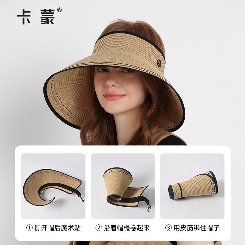 卡蒙防紫外线大帽檐度假草帽女夏遮脸空顶太阳帽沙滩防晒帽可折叠