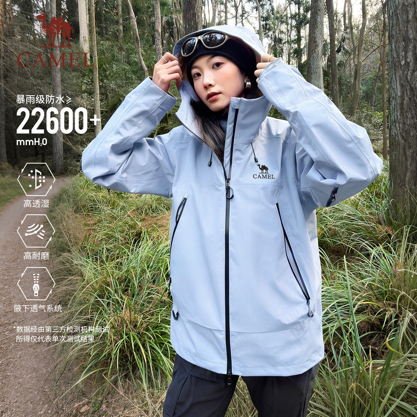 【月光蓝】骆驼户外冲锋衣三合一女防水滑雪服冬季旅游蓝色外套男