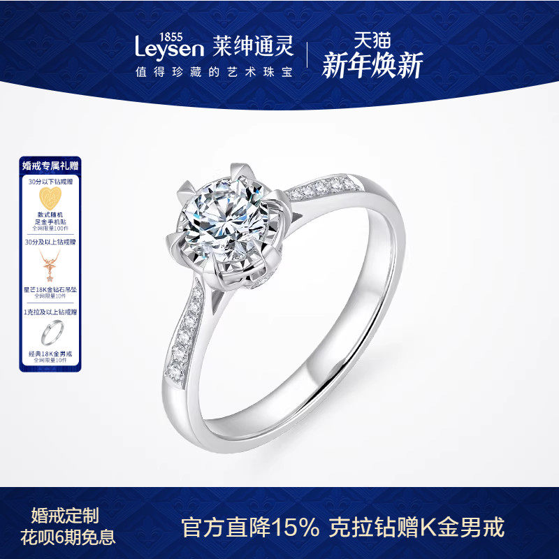 【婚戒定制】莱绅通灵珠宝 倾城 18k金钻石戒指求婚戒钻戒女显钻