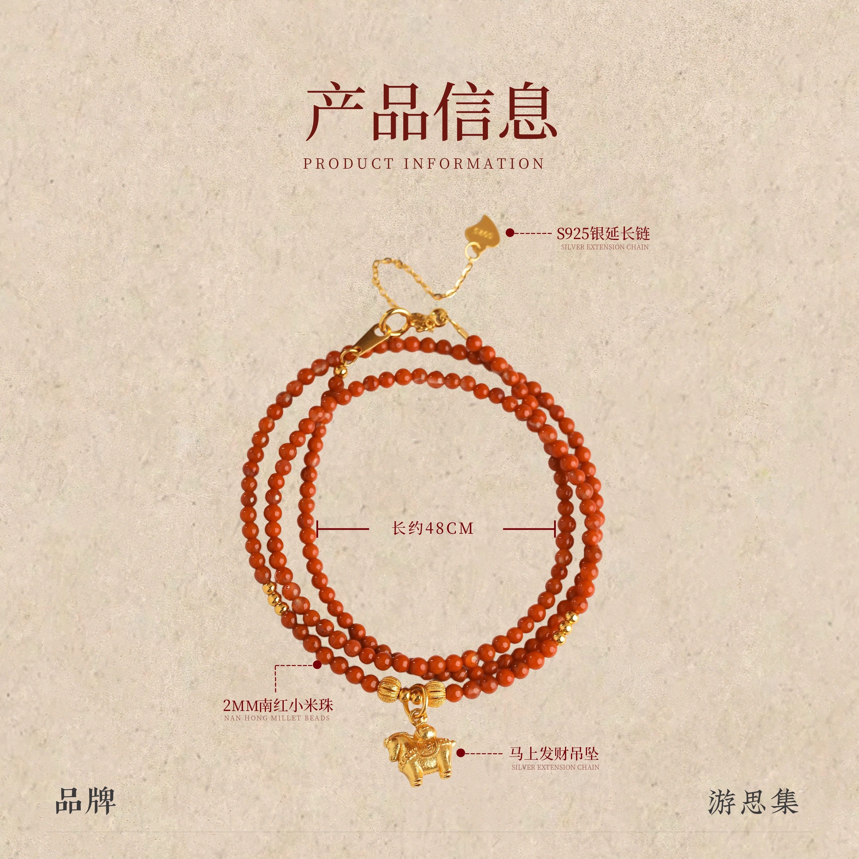 游思集2026马上发财女款南红玛瑙项链女川料樱桃红颈链串珠送礼物