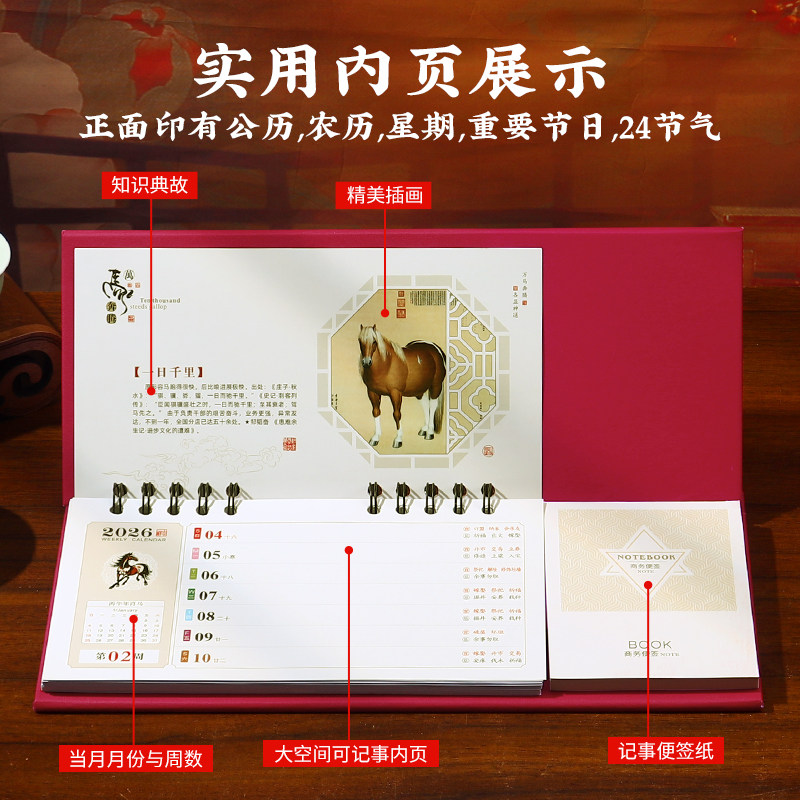 台历2026年新款大号记事可拆卸笔功能商务台座周历马年办公记事桌面摆件日历精美礼盒包装可定制企业logo广告
