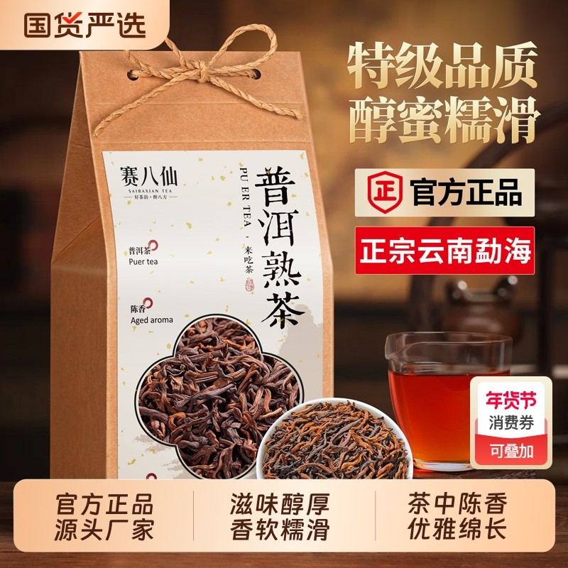 云南勐海宫廷金芽古树普洱茶熟茶十年以上特级熟普茶叶礼盒装