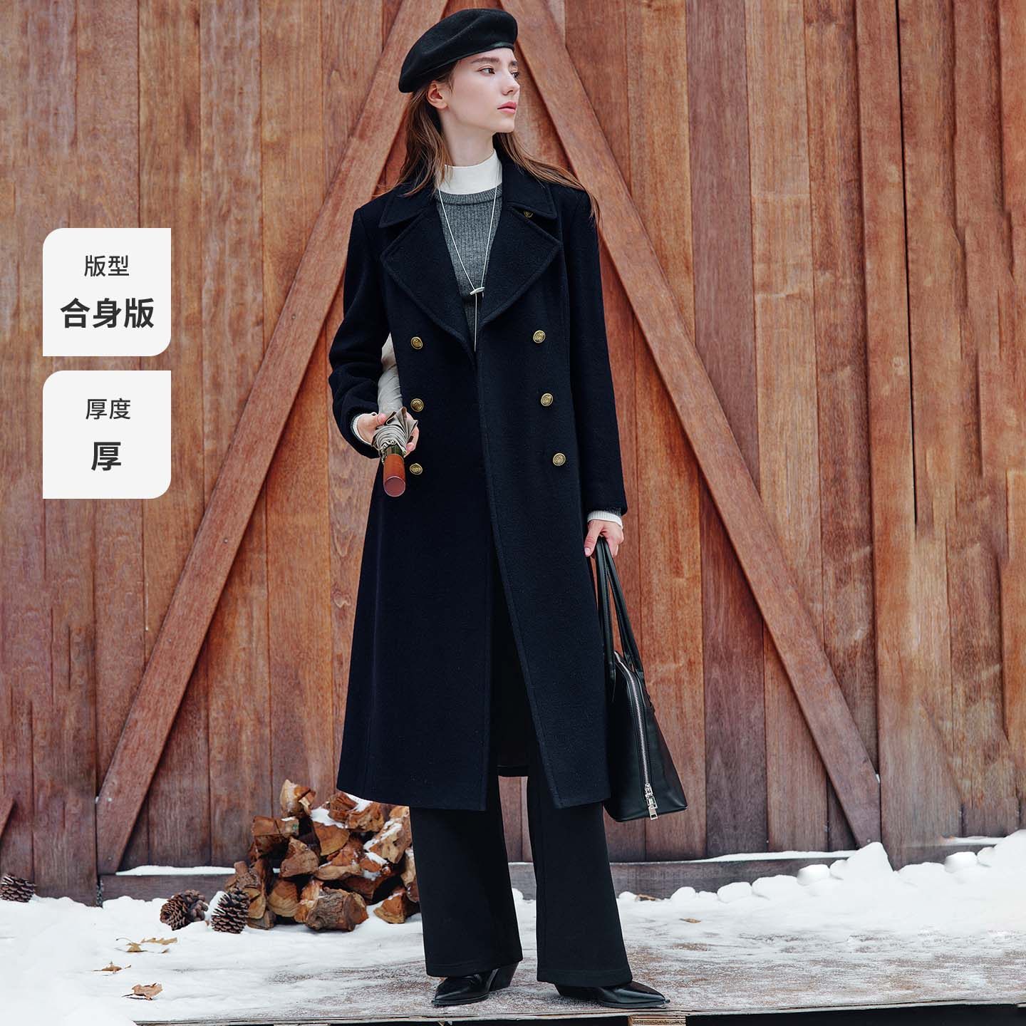 【专柜正版】高端双面羊毛羊绒毛呢大衣双排扣毛呢外套时尚洋xz8