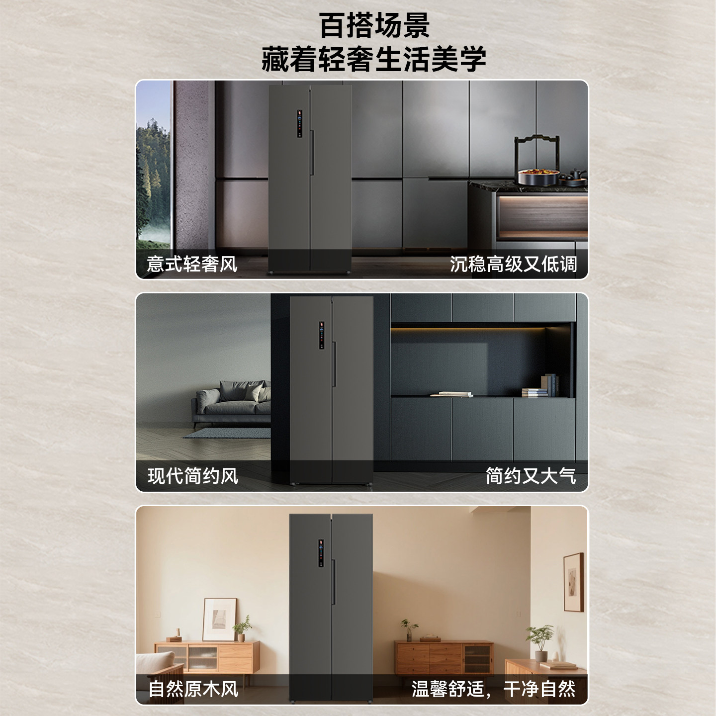 美的570+/606对开双开门两门大容量家用冰箱一级节能风冷无霜超薄
