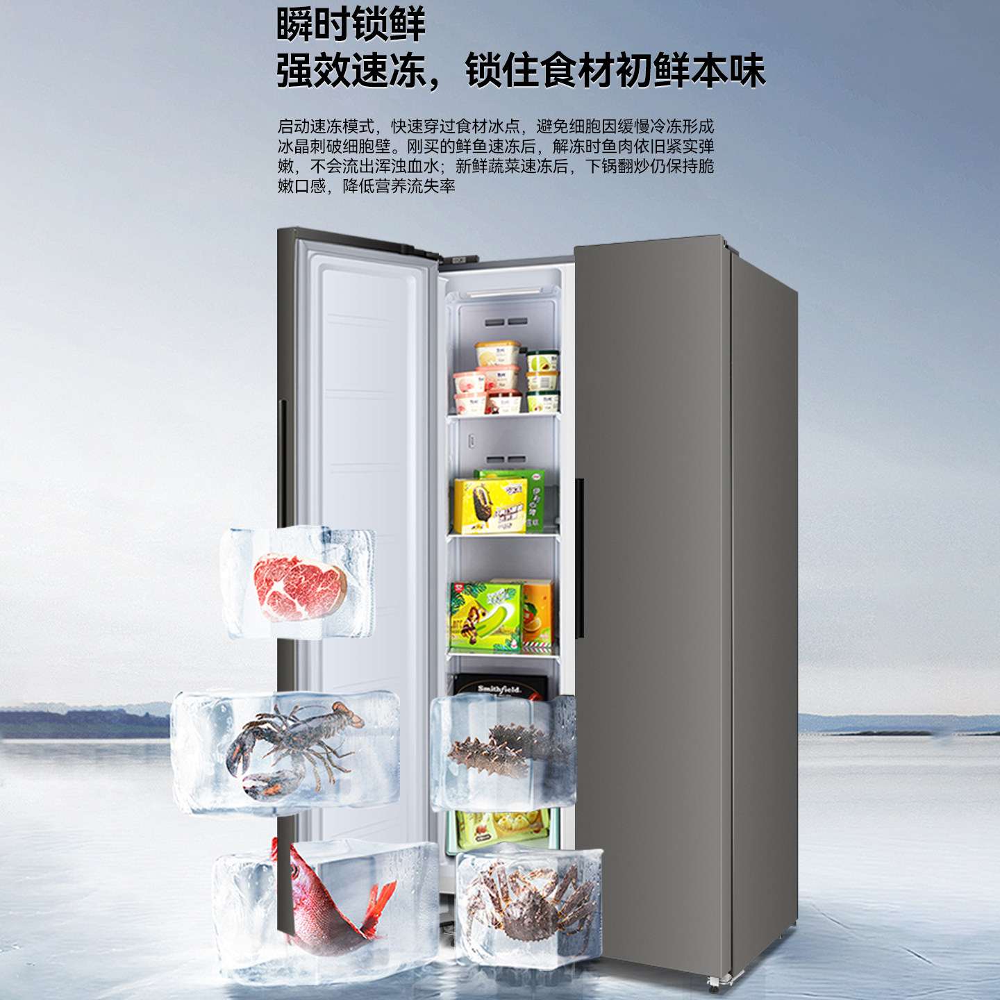 政府补贴美的M60机皇550零嵌入式双系统制冰冰箱家用法式双开四门