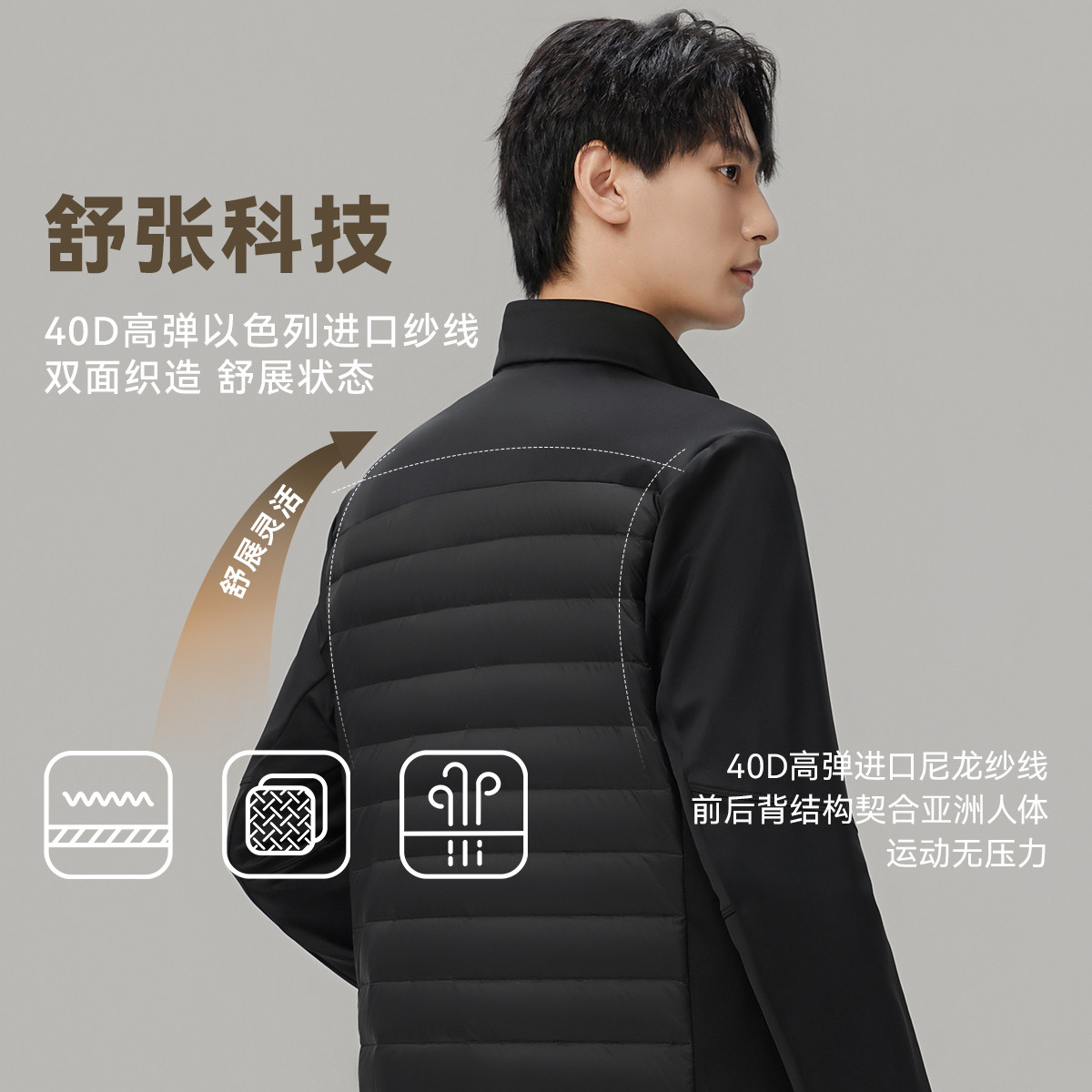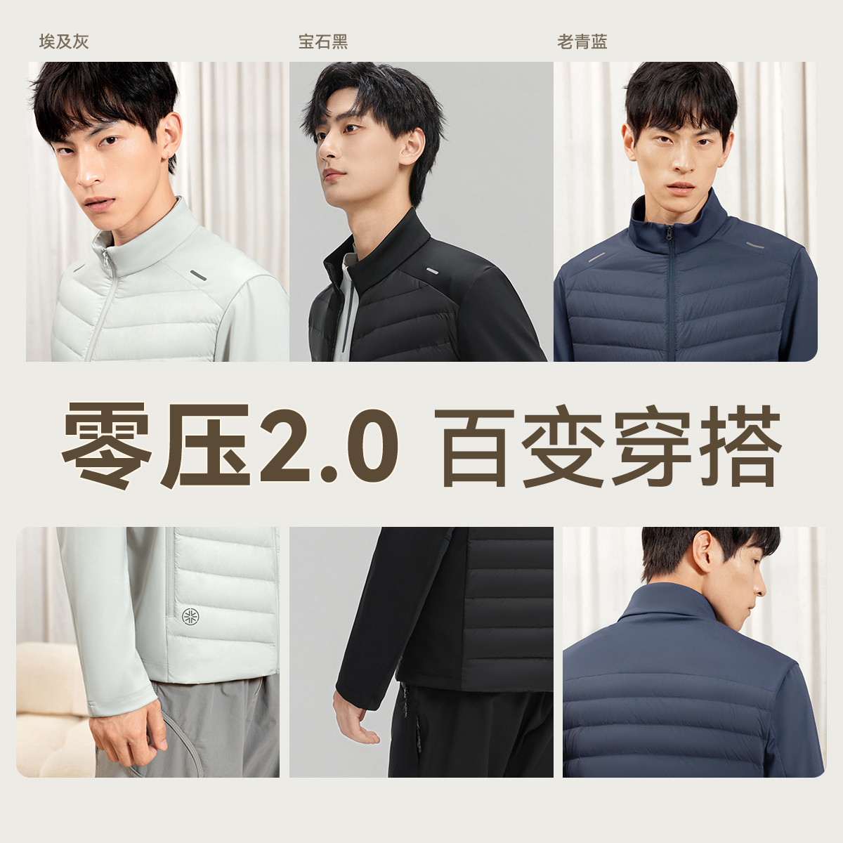 雪中飞2026春新款零压系列男士舒适拼接轻薄羽绒外套纯色百搭