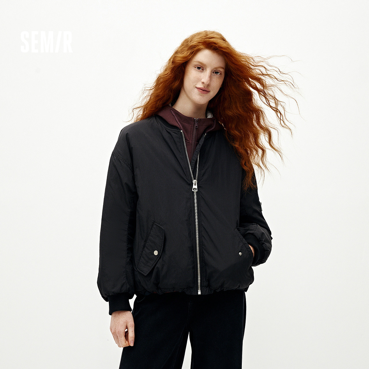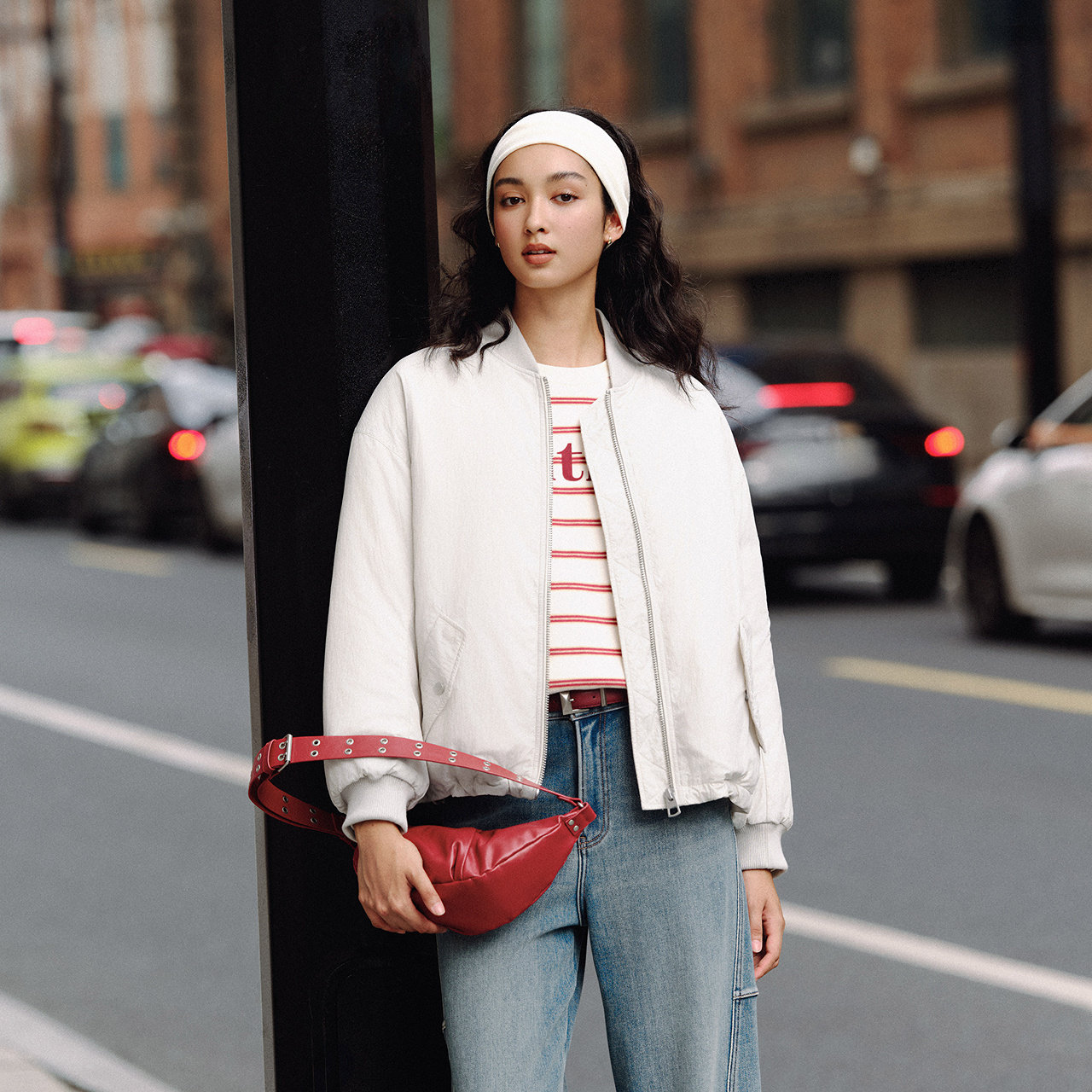 商场同款|森马棉服女冬发热轻薄肌理宽松棒球领2025新款慵懒棉衣