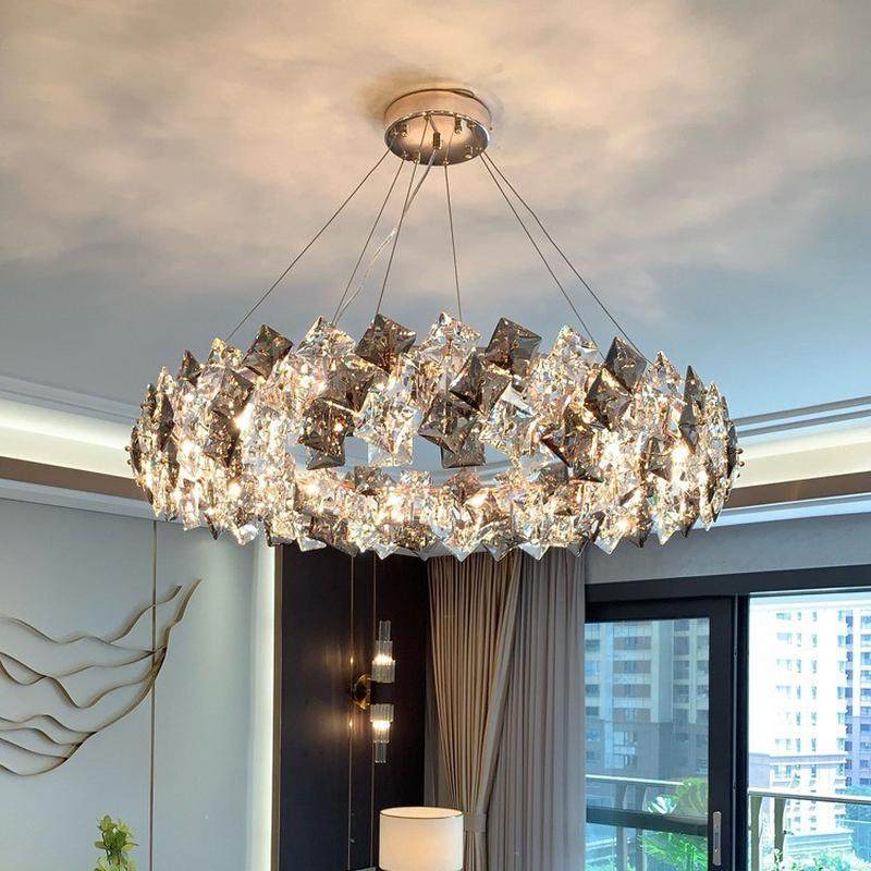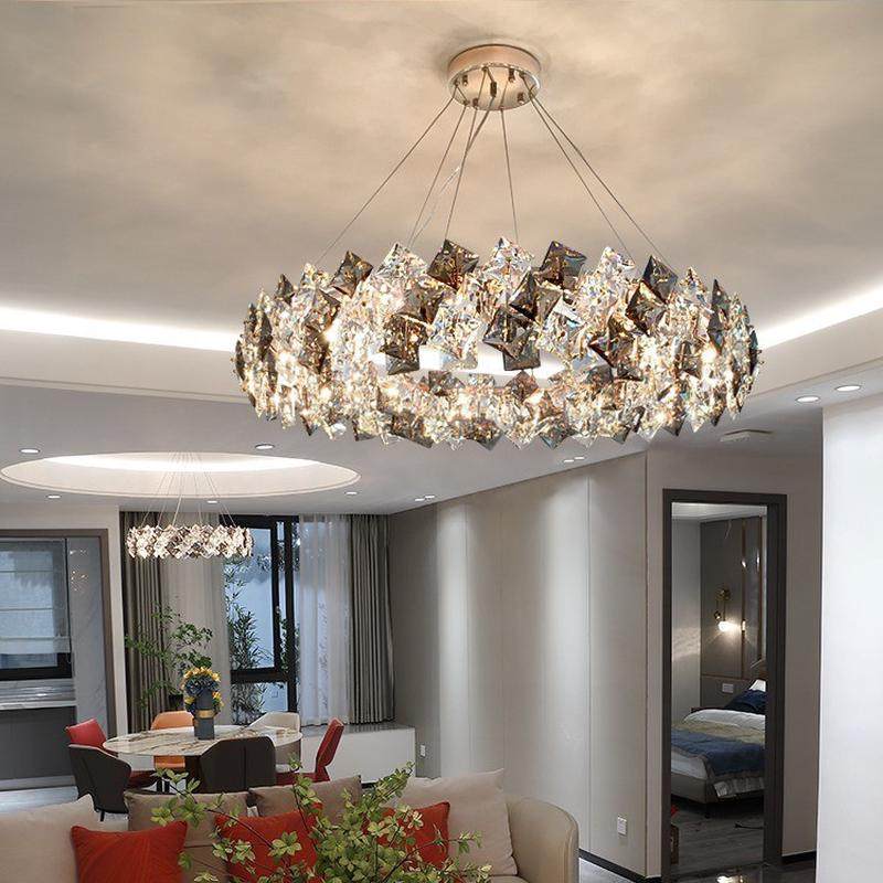 轻奢圆环水晶吊灯家用大气样板房客厅主灯后现代简约房间卧室灯