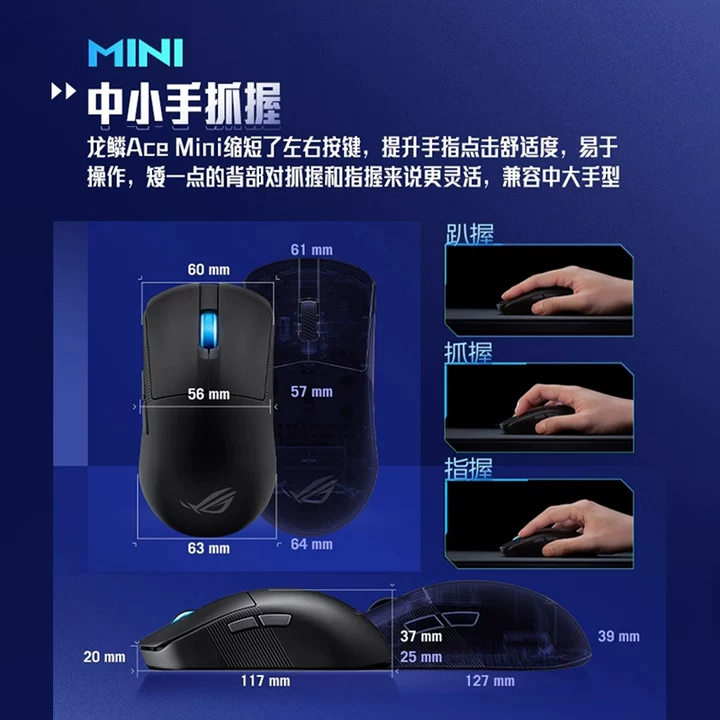 【圣诞礼物】ROG龙鳞Ace Mini三模电竞蓝牙无线鼠标轻量化SpeedNova无线技术8k轮询率中小手对称滑鼠玩家国度
