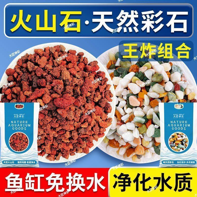 鱼缸底砂造景铺底生态水草天然雨花石五彩石火山石古法养鱼净水沙