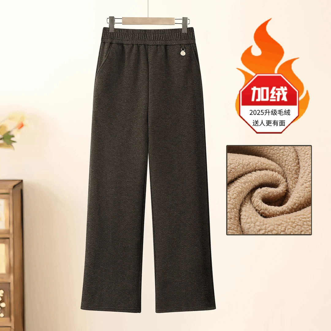 秋冬中老年妈妈装百搭洋气减龄高腰休闲大码宽松直筒裤女加绒加厚