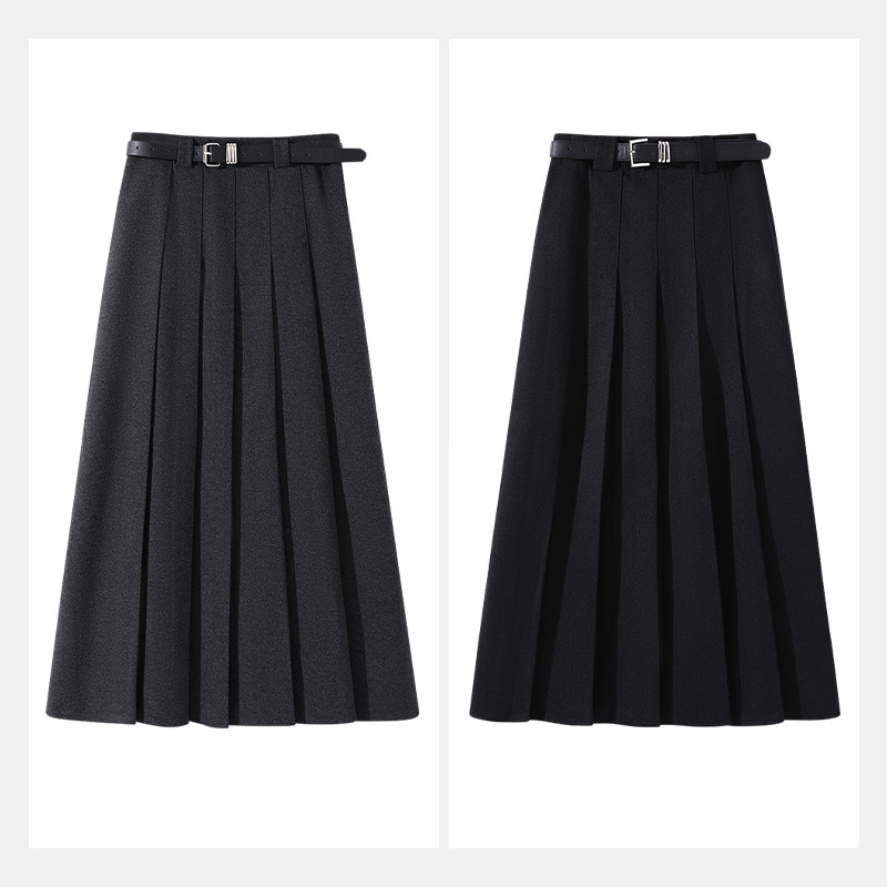 MJ STYLE灰色百褶西装裙女秋冬半身裙高腰休闲大摆a字过膝中长裙