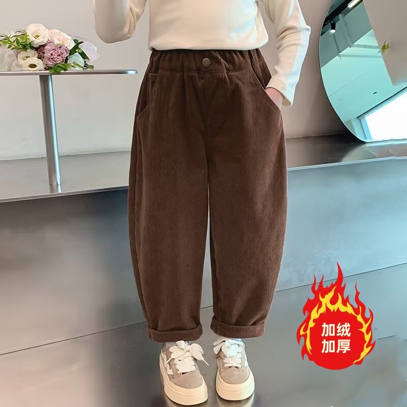 女童裤子加绒秋冬2025新款儿童加厚女孩春秋卫裤流行格子休闲咖色