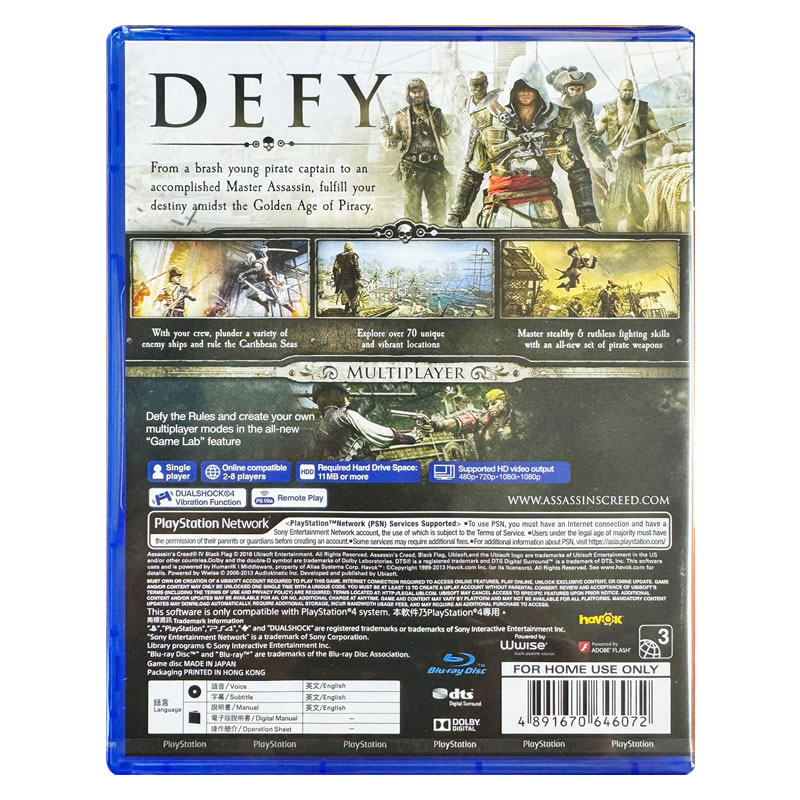 香港直邮 港行原封 PS4游戏光盘 中英文 刺客信条黑旗 刺客教条 Black Flag PS4游戏 现货